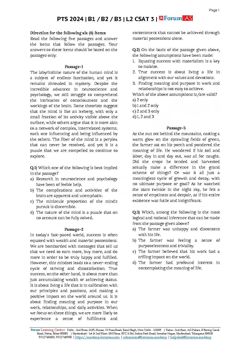 / FORUM IAS 2024 TEST-9 L2 CSAT TEST-3 2024 FINAL {ENGLISH} {BLACK AND WHITE}
