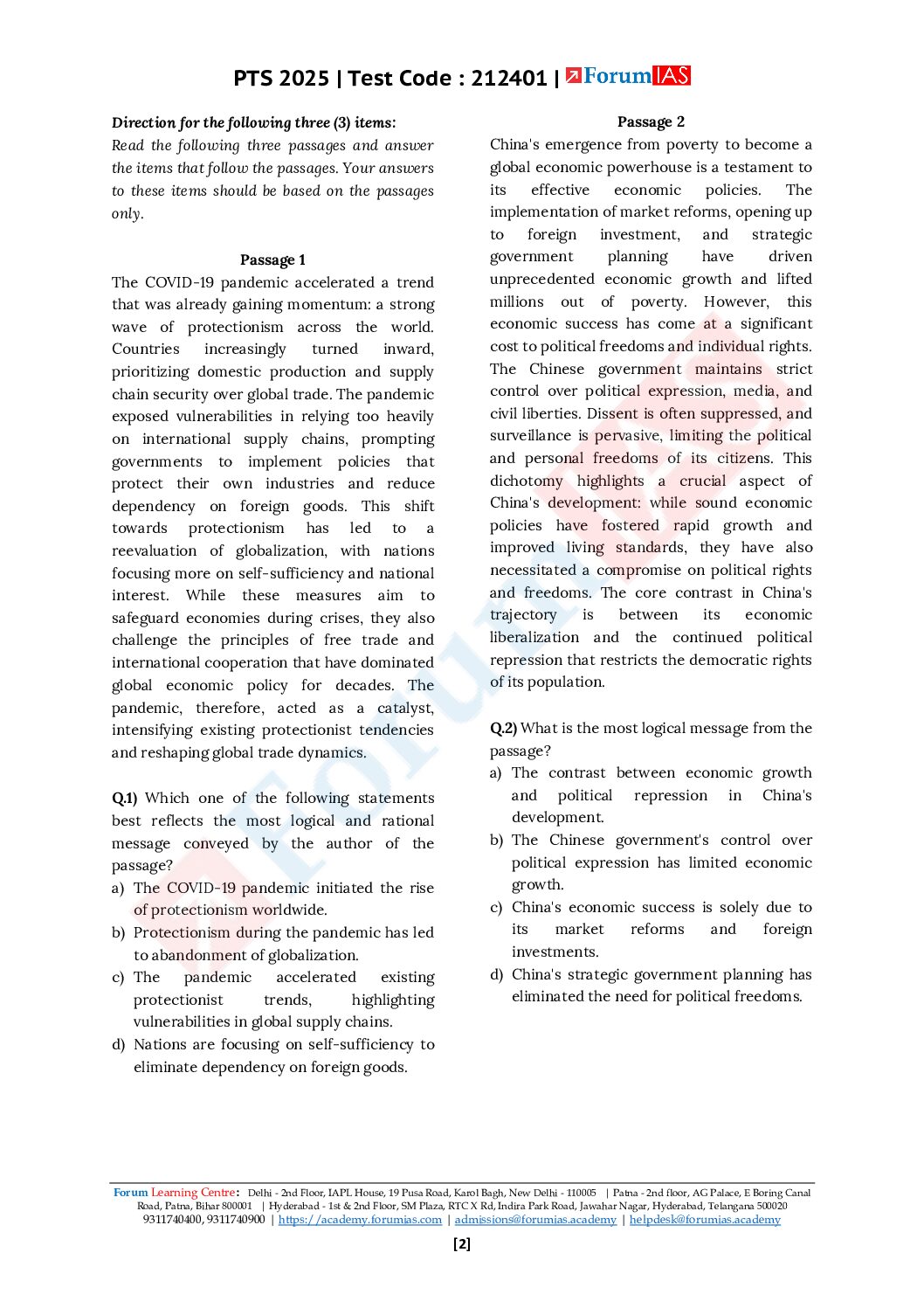 FORUM IAS 2025 CSAT TEST-7 (L2 TEST-1) 2025 FINAL (ENGLISH) {BLACK AND WHITE}