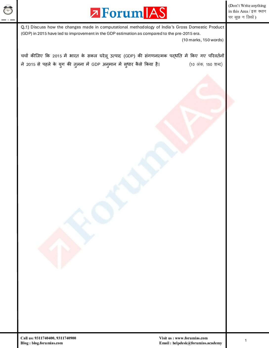 FORUM IAS 2025 MGP COHART-1 QUESTION CUM ANSWER BOOKLETS HALF LENGTH TEST-4-QCA FINAL (ENGLISH & HINDI) {BLACK & WHITE}