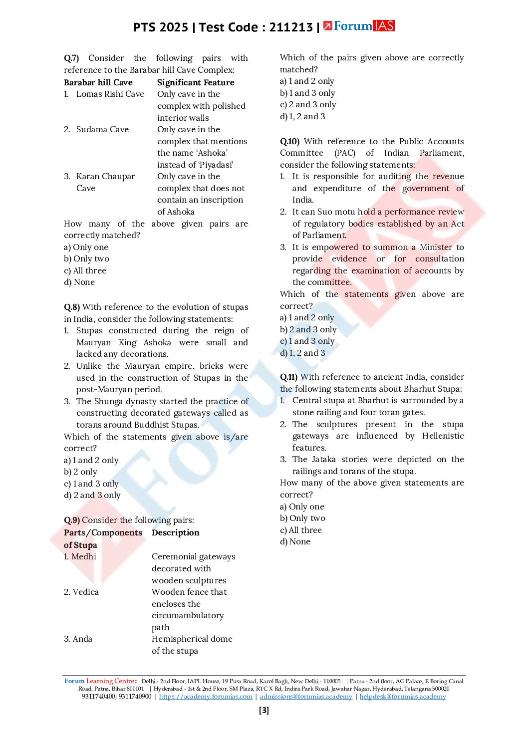 FORUM IAS 2025 PTS GENERAL STUDIES TEST-25 (L2 TEST-13) ART & CULTURE 2025 FINAL (ENGLISH) {BLACK AND WHITE}