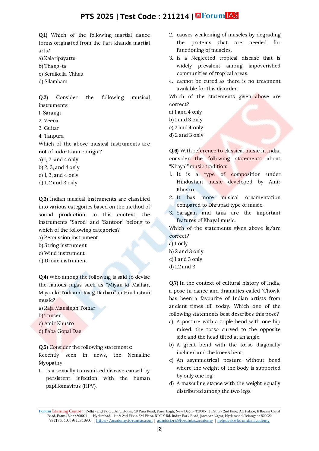 FORUM IAS 2025 PTS GENERAL STUDIES TEST-26 (L2 TEST-14) ART & CULTURE 2025 FINAL (ENGLISH) {BLACK AND WHITE}