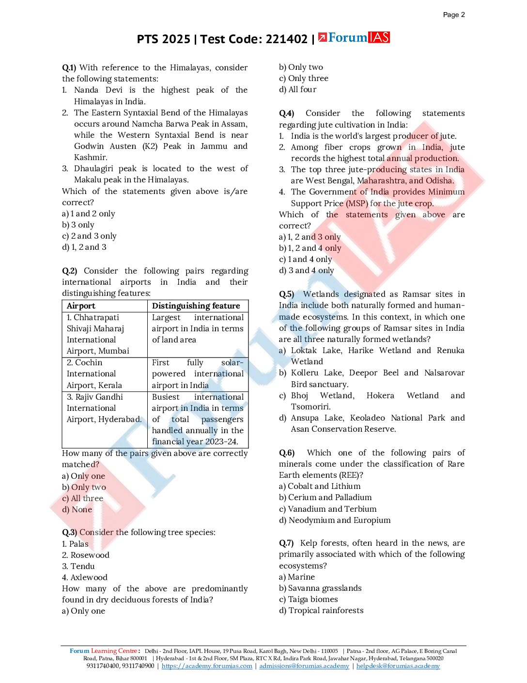 / FORUM IAS 2025 SIMULATOR TEST-1 2025 FINAL (ENGLISH) {BLACK AND WHITE}