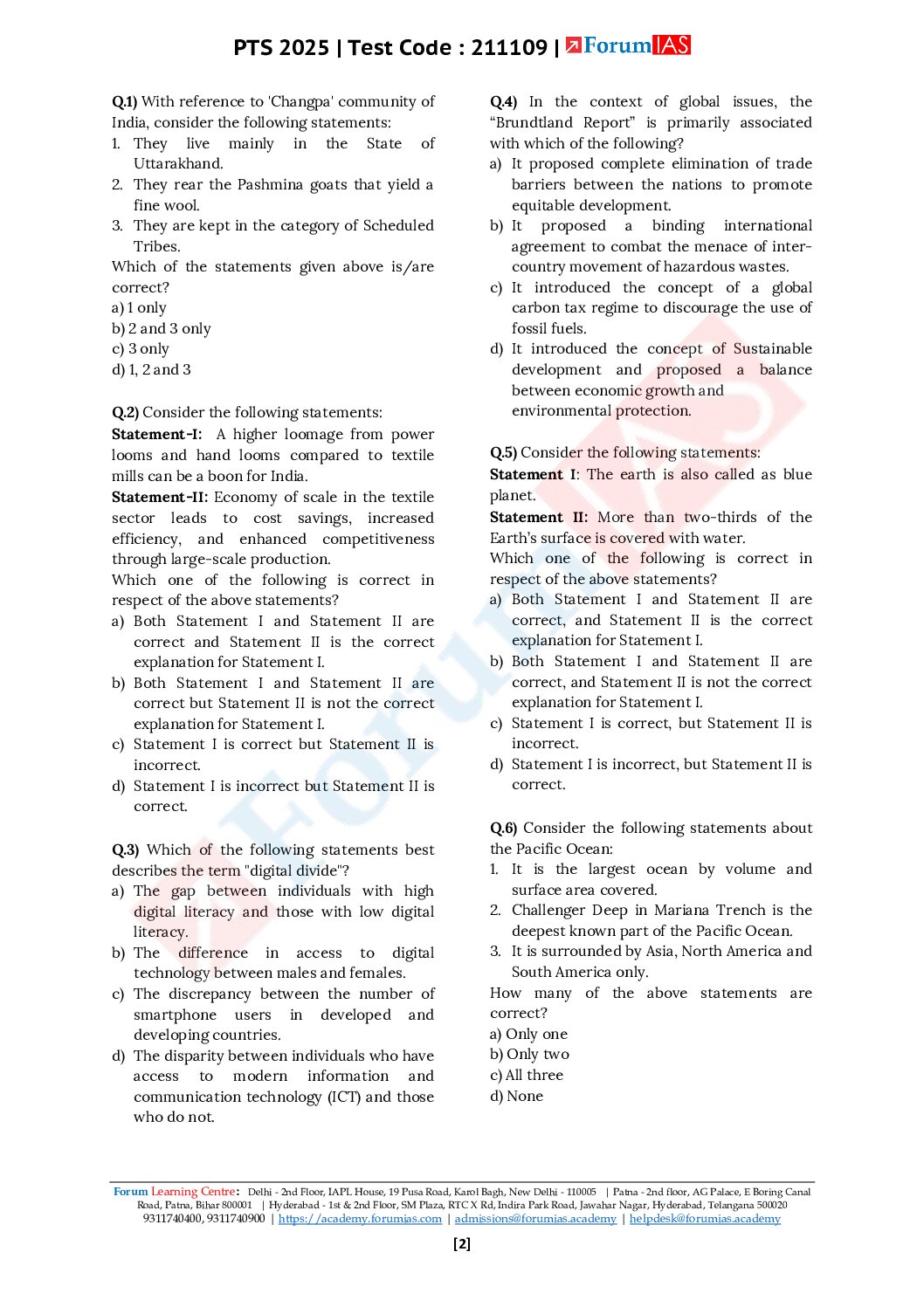 FORUM IAS 2025 TEST-9 (L1 TEST-9) GEOGRAPHY & AGRICULTURE2025 FINAL (ENGLISH) {BLACK AND WHITE} quantity