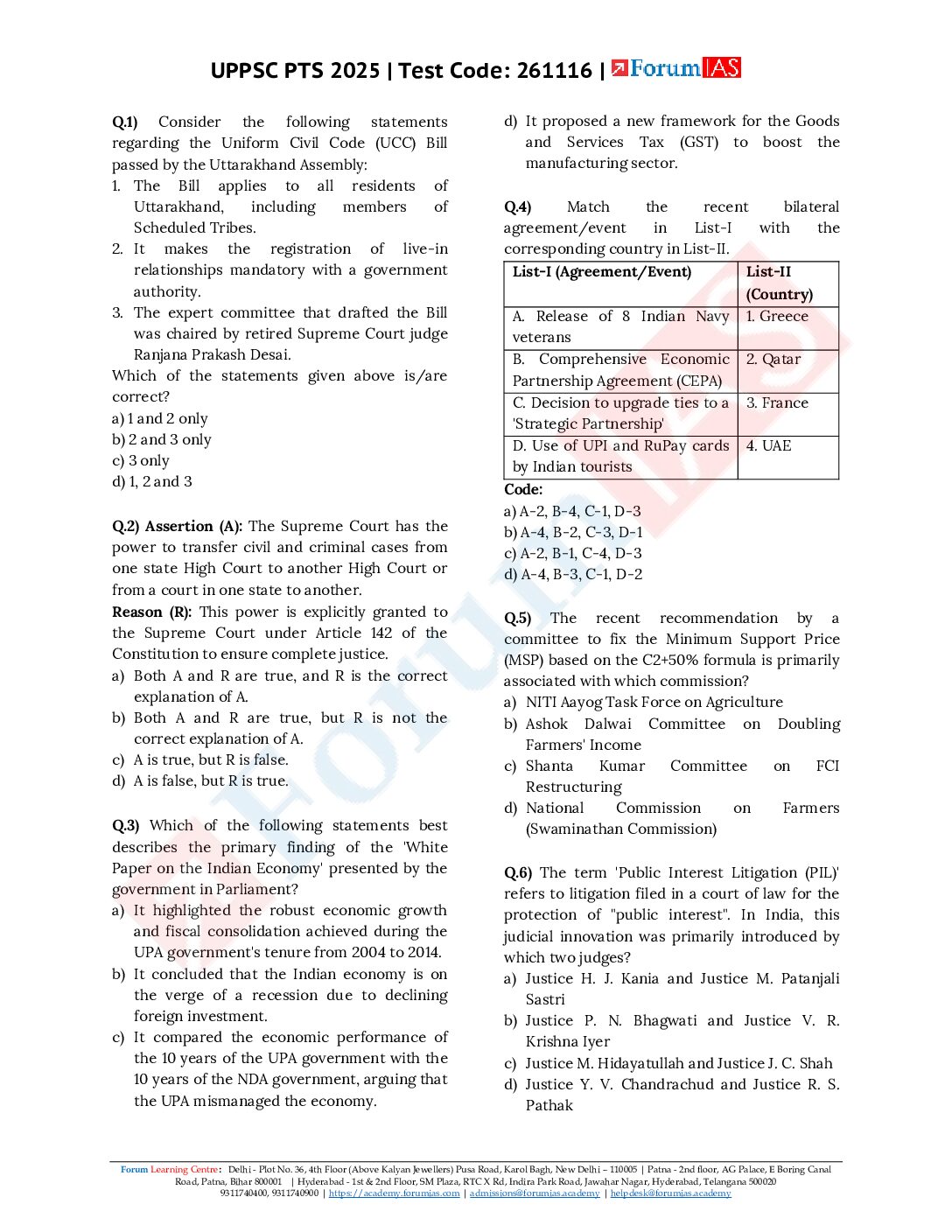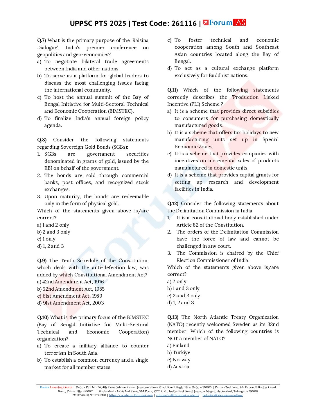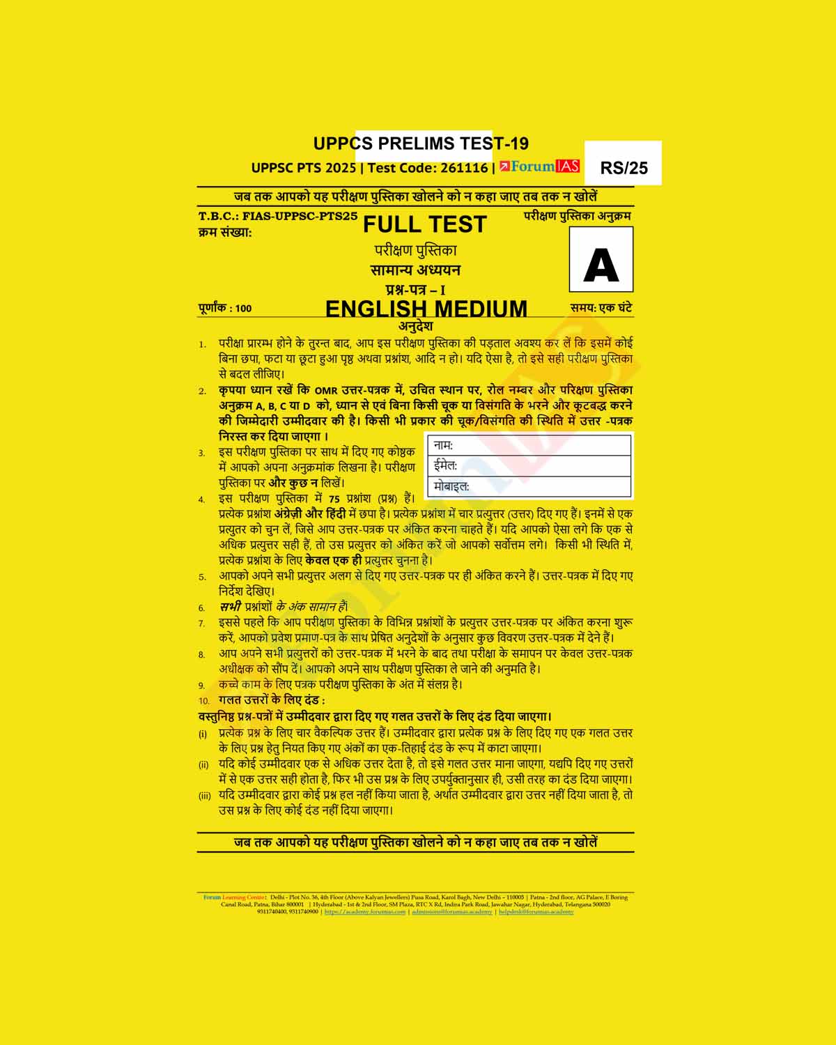 / FORUM IAS 2025 TEST-19 2025 FINAL FULL TEST UPPCS (ENGLISH) {BLACK AND WHITE}