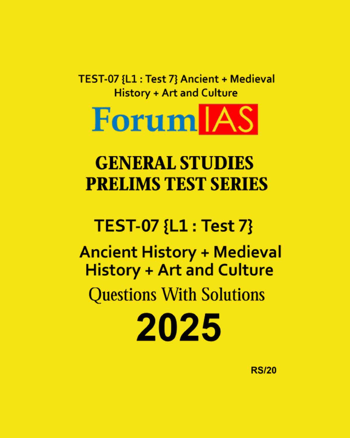FORUM IAS 2025 TEST-7 (L1 TEST-7) ANCIENT + MEDIEVAL + ART AND CULTURE 2025 FINAL (ENGLISH) {BLACK AND WHITE}