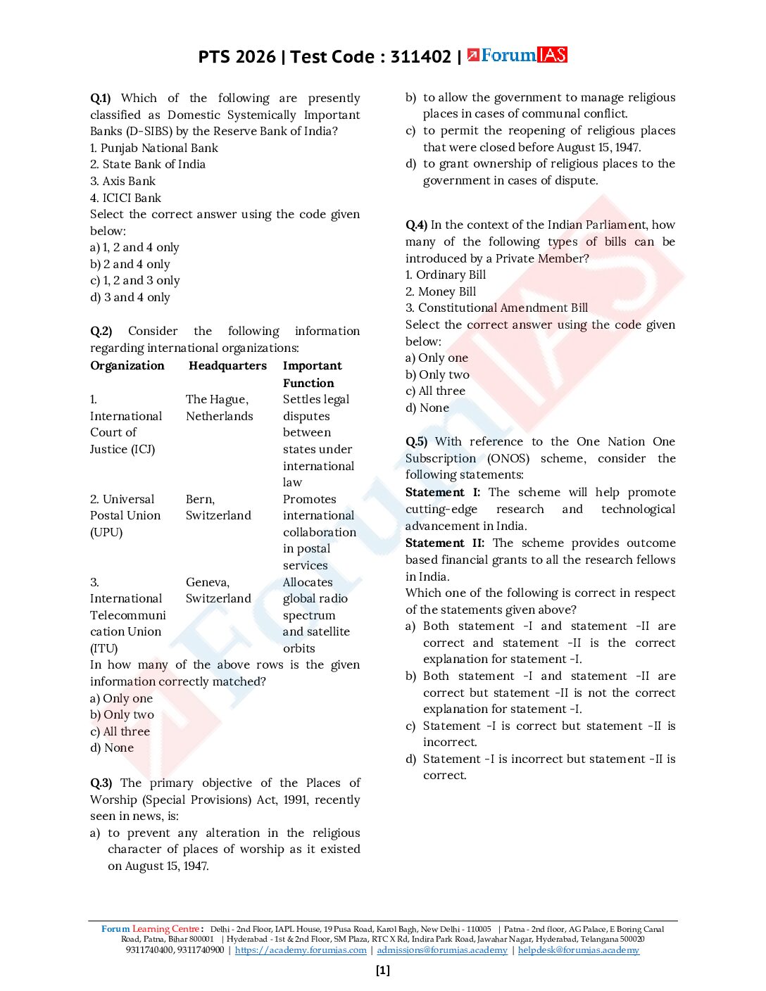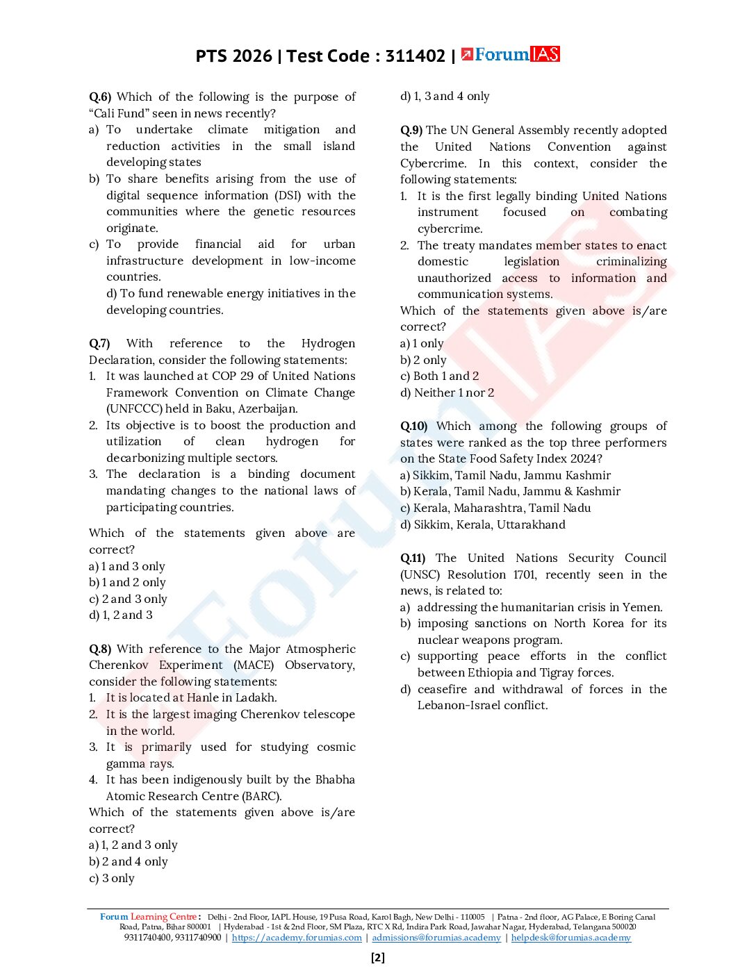 / FORUM IAS 2026 CURRENT AFFAIRS TEST-1 2026 FINAL (OCTOBER 2024 TO DECEMBER 2024) (ENGLISH) {BLACK AND WHITE}