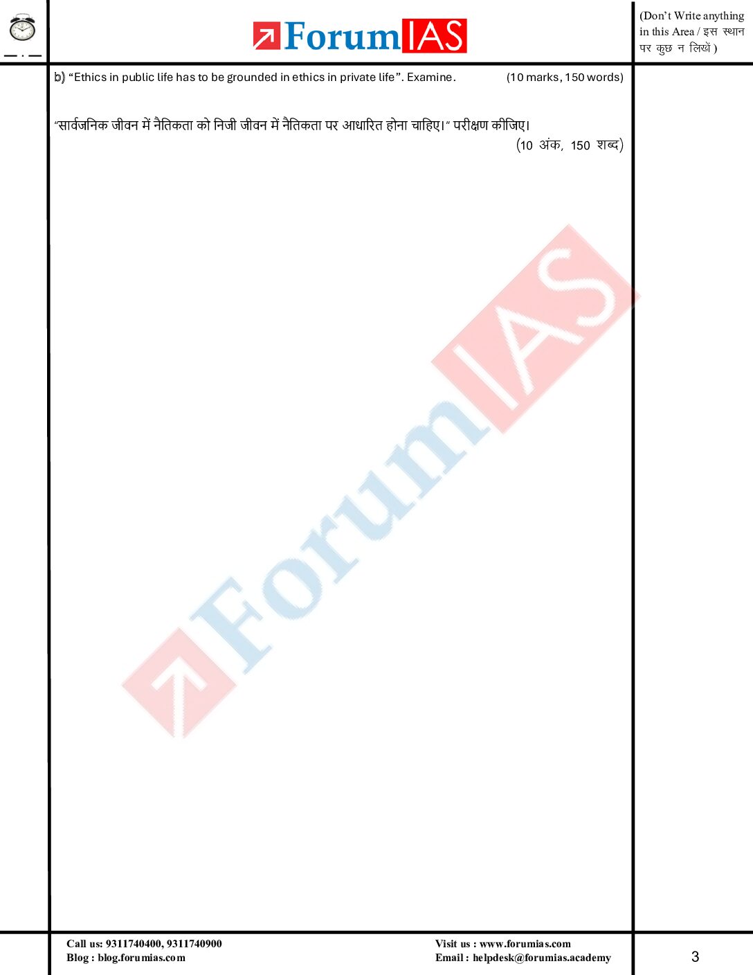 / FORUM IAS 2026 MGP (COHART-8) QUESTION CUM ANSWER BOOKLETS HALF LENGTH TEST-18-QCA FINAL (ENGLISH) {BLACK AND WHITE}