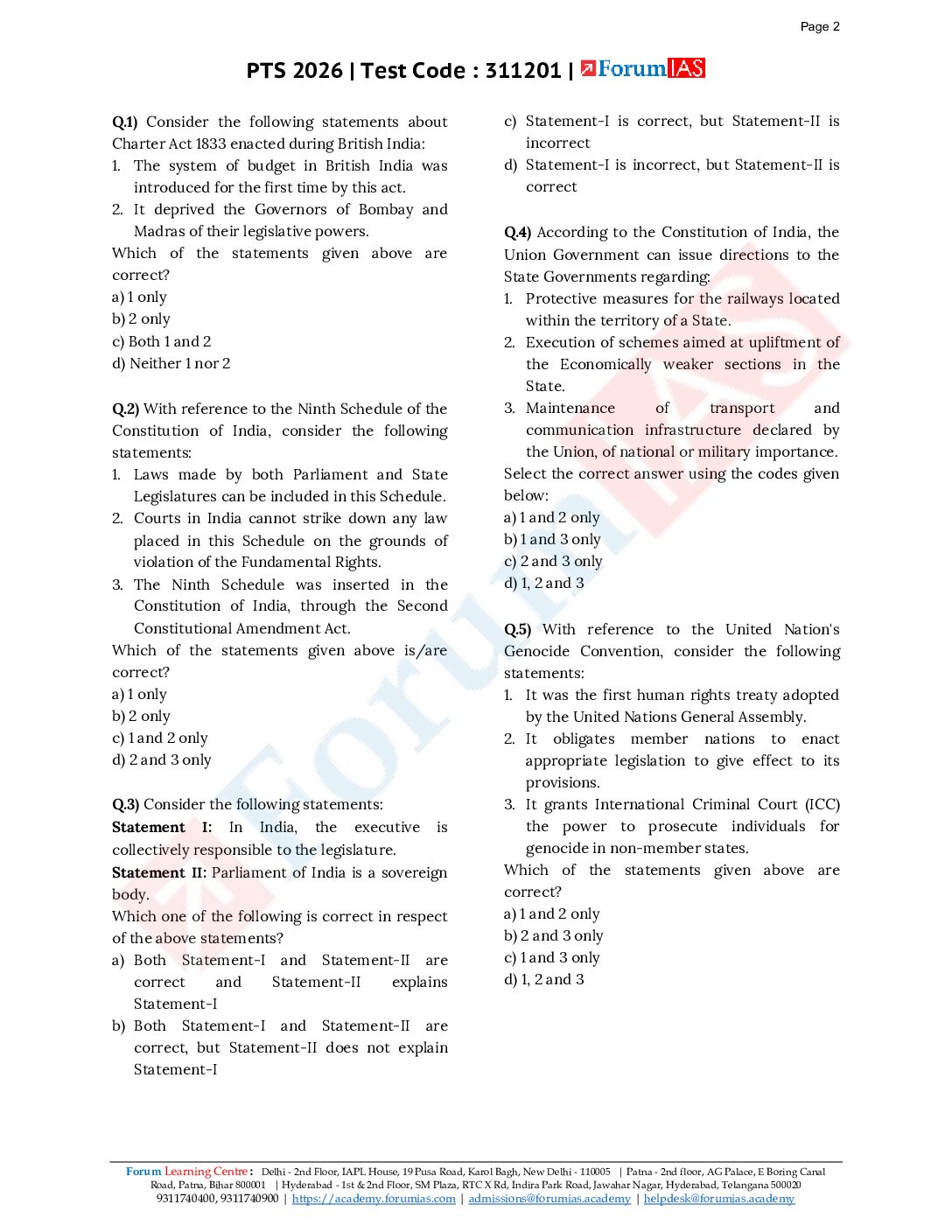 FORUM IAS 2026 PT TEST-13 (L2 TEST-1) POLITY-I 2026 FINAL (ENGLISH) {BLACK AND WHITE}