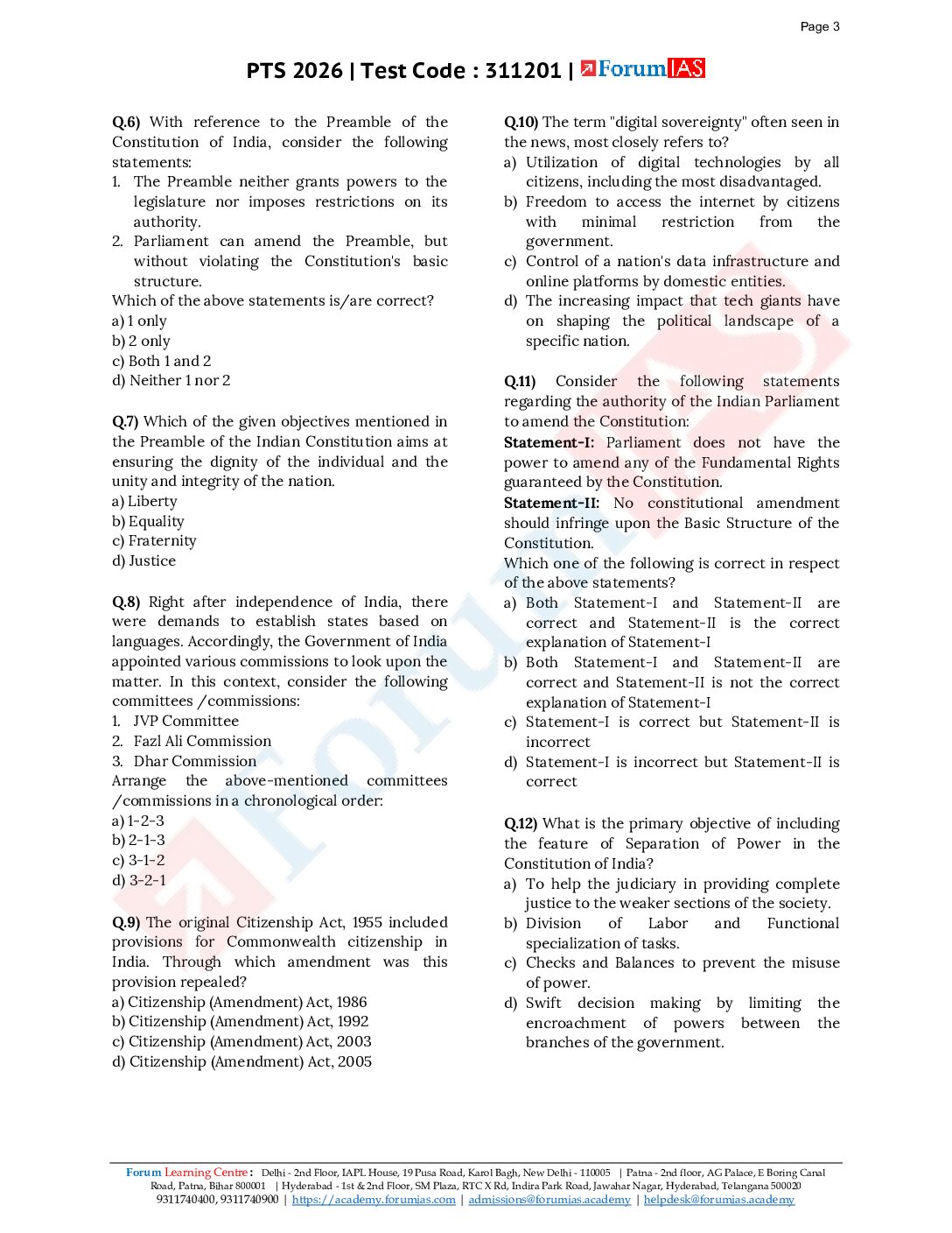 / FORUM IAS 2026 PT TEST-13 (L2 TEST-1) POLITY-I 2026 FINAL (ENGLISH) {BLACK AND WHITE}
