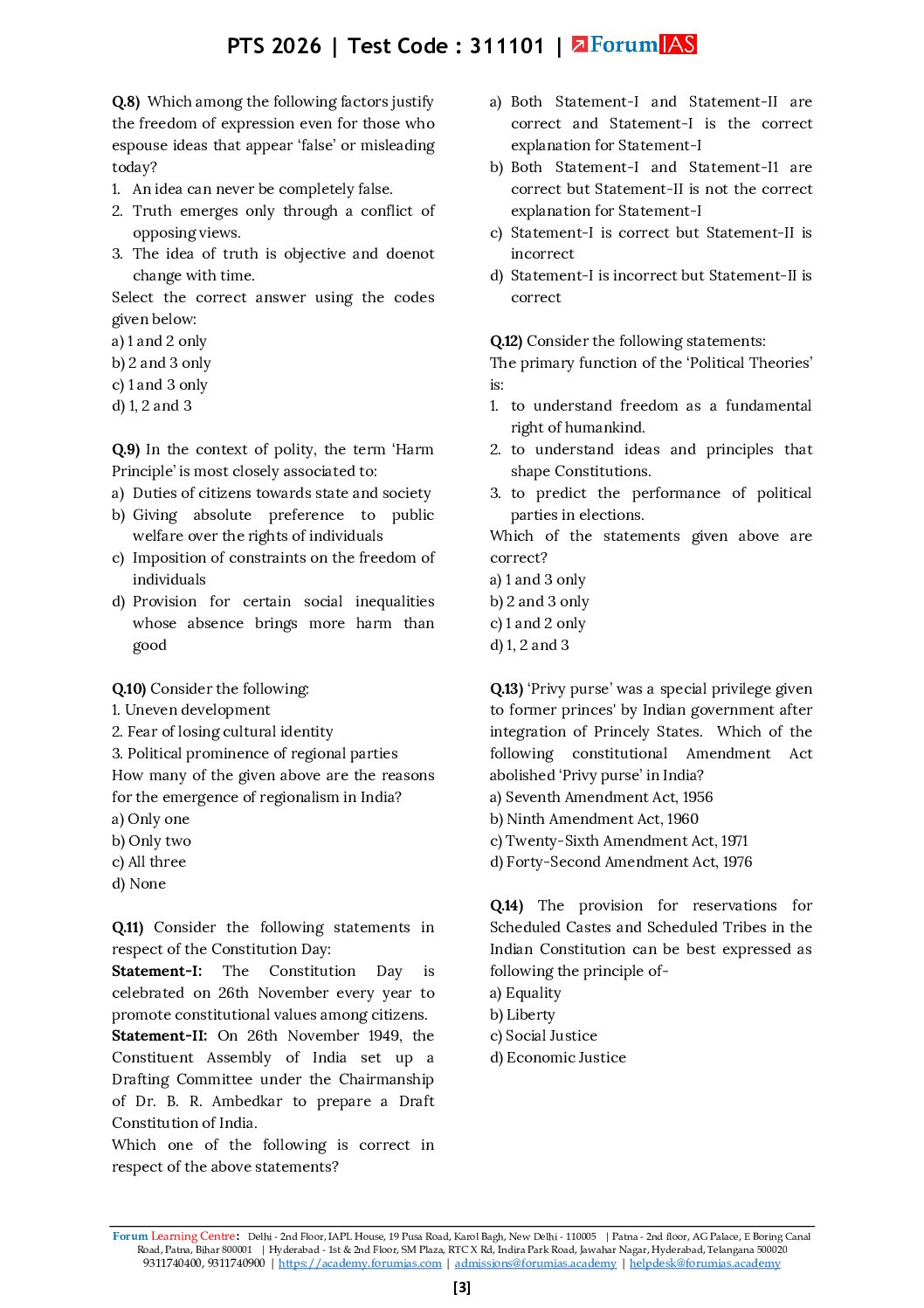 FORUM IAS 2026 PT TEST-3 (L1 TEST-3) ECONOMICS 2026 FINAL (ENGLISH) {BLACK AND WHITE} quantity