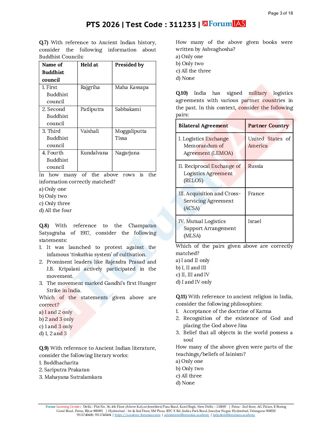 FORUM IAS 2026 PT TEST-39 (L3 TEST-3) COMPRAHENSIVE TEST-ANCIENT, MEDIEVAL, MODERN FULL TEST FINAL (ENGLISH) {BLACK AND WHITE}