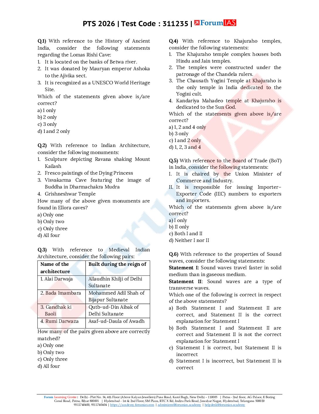 FORUM IAS 2026 PT TEST-41(L3 TEST-5) COMPRAHENSIVE TEST-ART AND CULTURE + SCIENCE & TECHNOLOGY + AGRICULTURE FULL TEST FINAL (ENGLISH) {BLACK AND WHITE}