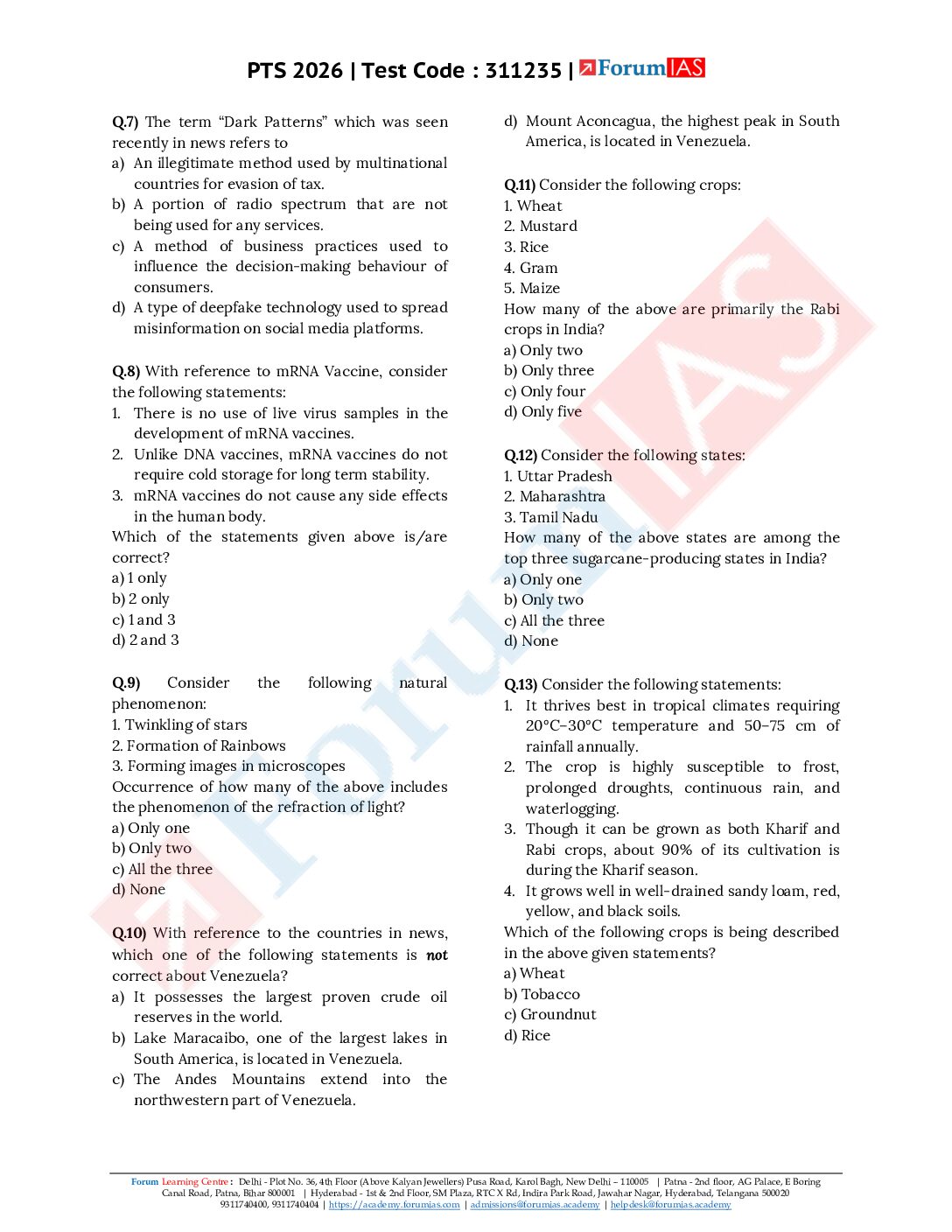 / FORUM IAS 2026 PT TEST-41(L3 TEST-5) COMPRAHENSIVE TEST-ART AND CULTURE + SCIENCE & TECHNOLOGY + AGRICULTURE FULL TEST FINAL (ENGLISH) {BLACK AND WHITE}