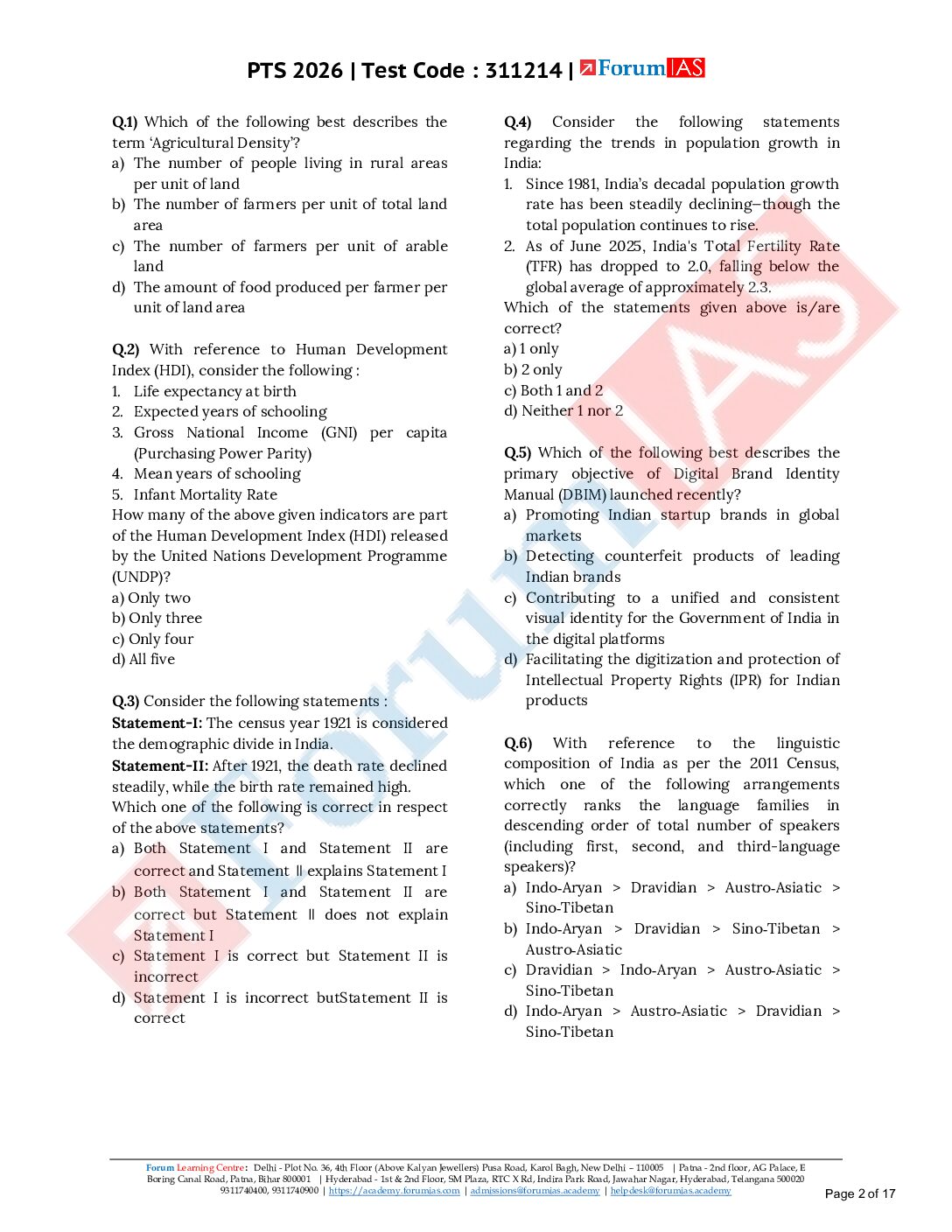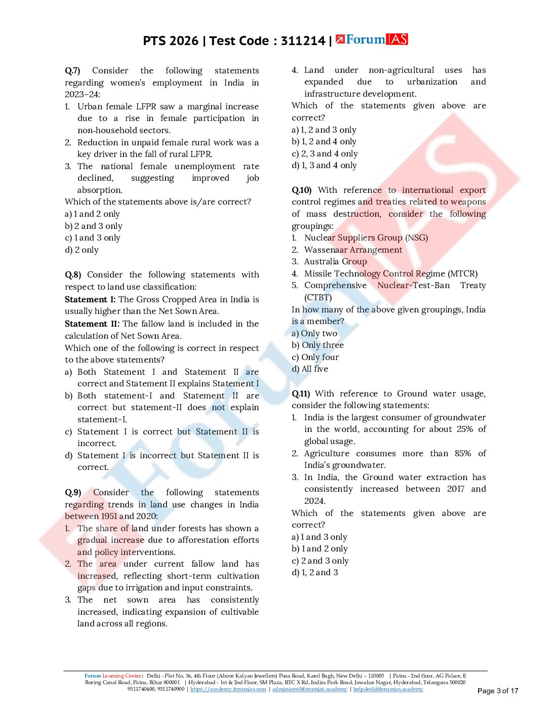 FORUM IAS 2026 TEST-26 (L2 TEST-14) GEOGRAPHY-3 2026 FINAL (ENGLISH) {BLACK AND WHITE}