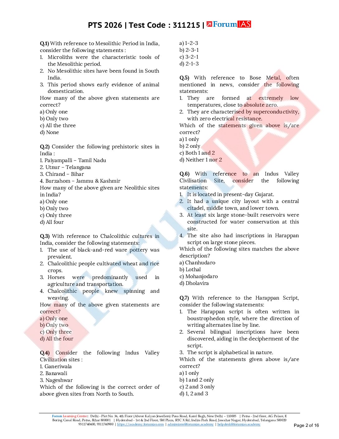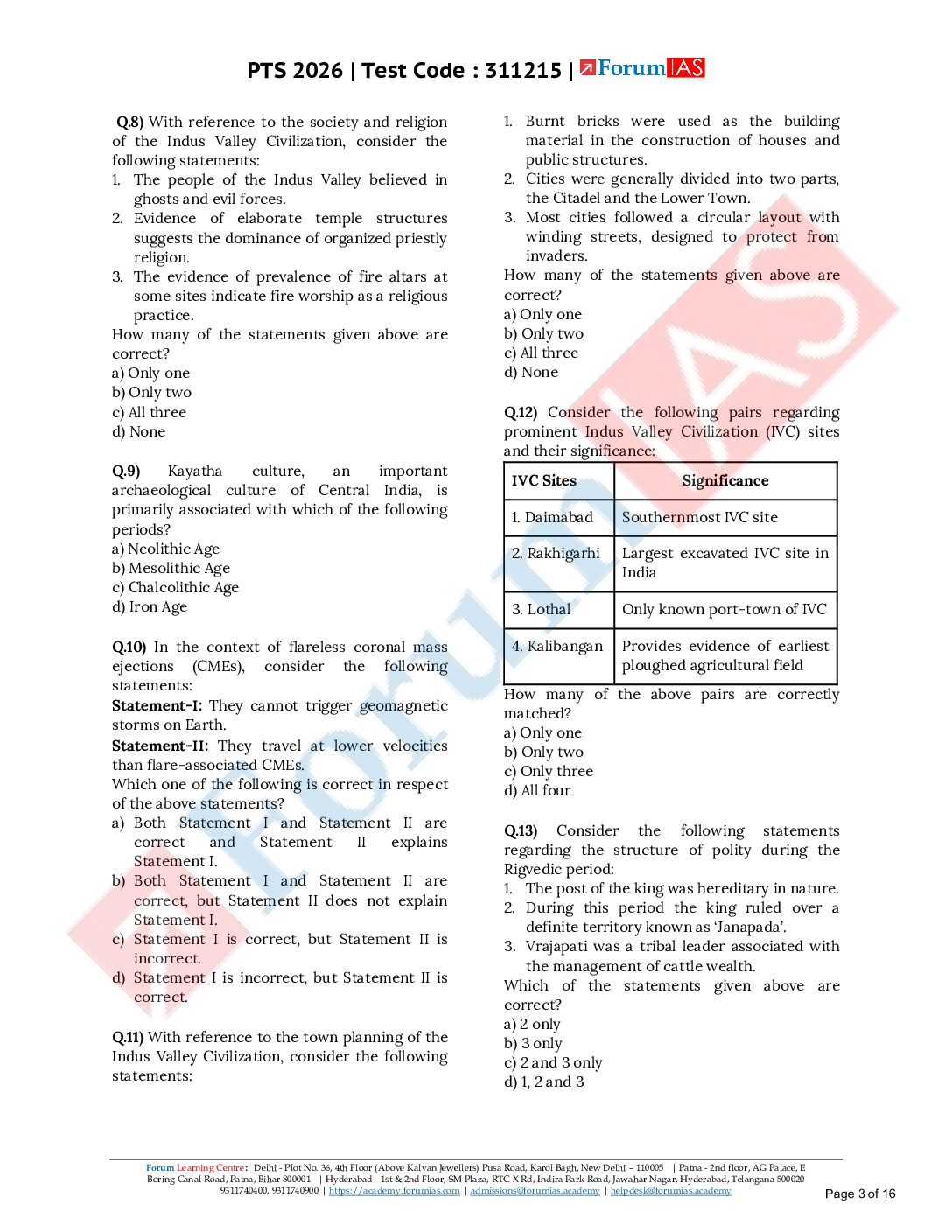 / FORUM IAS 2026 TEST-27 (L2 TEST-15) ANCIENT HISTORY 2026 FINAL (ENGLISH) {BLACK AND WHITE}