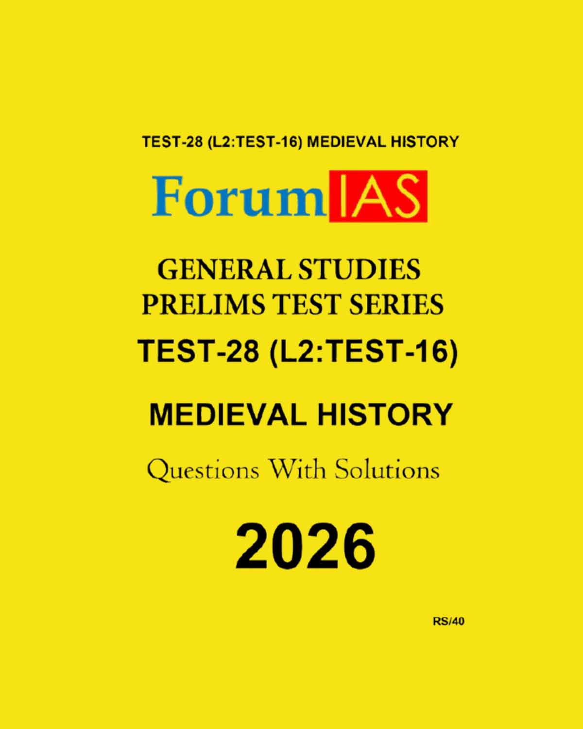 FORUM IAS 2026 TEST-28 (L2 TEST-16) MEDIEVAL HISTORY 2026 FINAL (ENGLISH) {BLACK AND WHITE} quantity