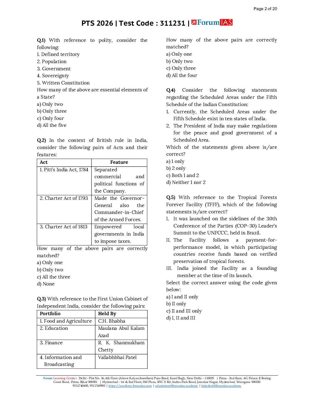 / FORUM IAS 2026 TEST-37 (L3 TEST-1) COMPRAHENSIVE TEST-POLITY FULL TEST 2026 FINAL (ENGLISH) {BLACK AND WHITE}