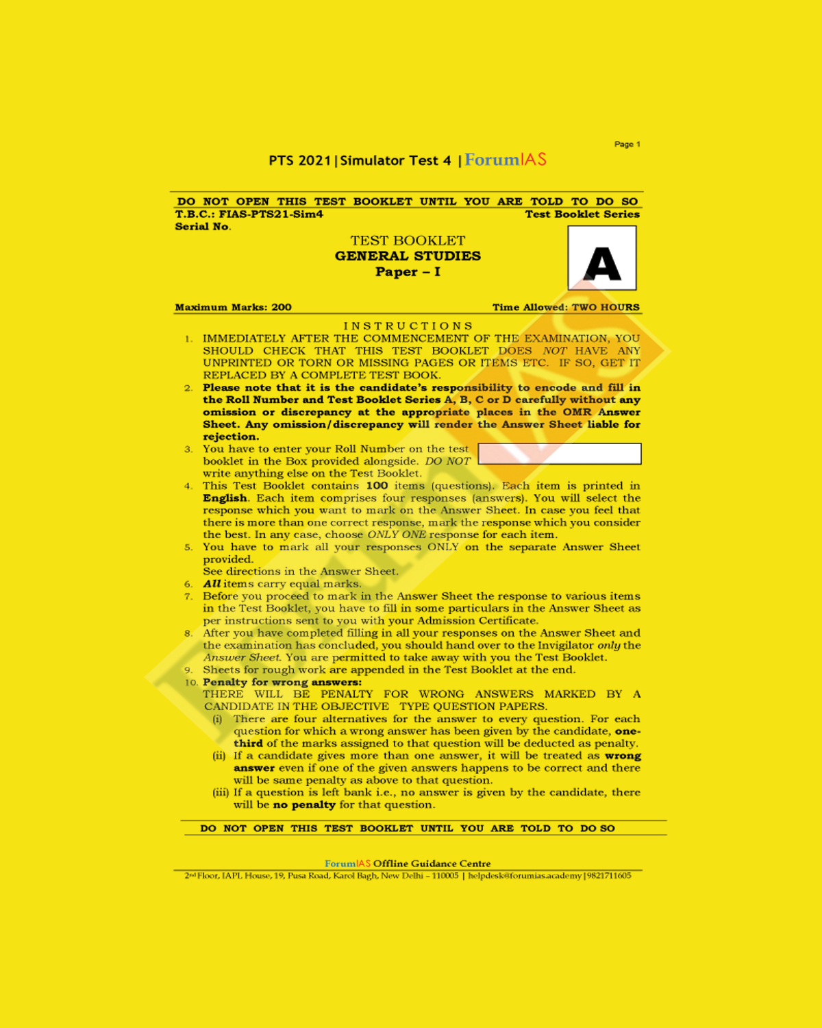 / Forum IAS All India Open Simulator Test 4 PTS 2021