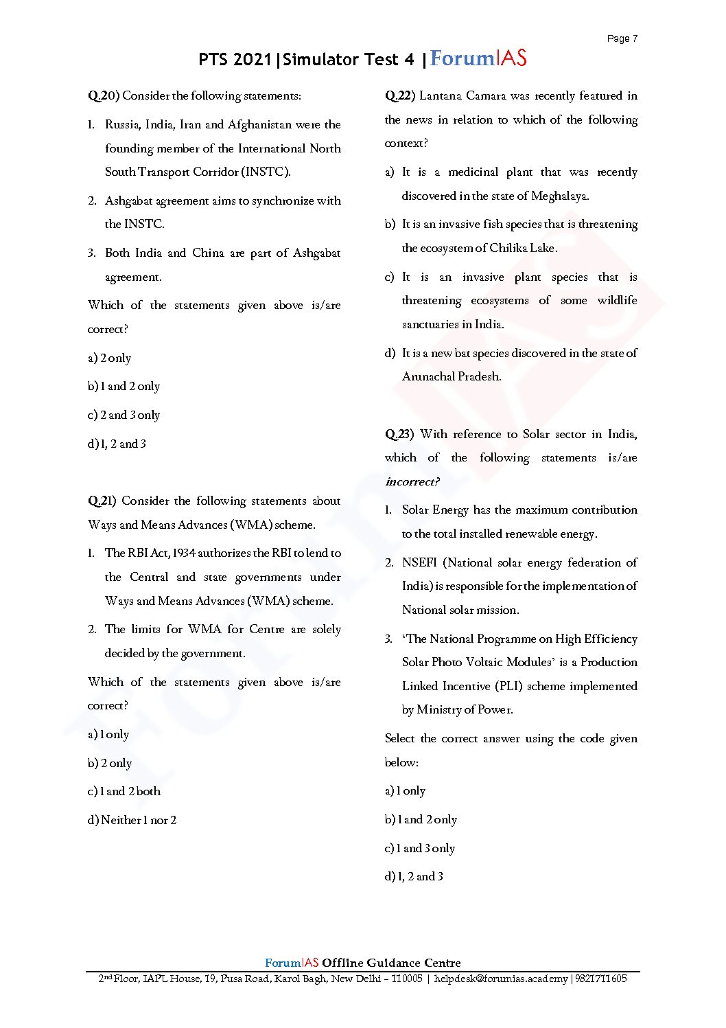 Forum IAS All India Open Simulator Test 4 PTS 2021 quantity