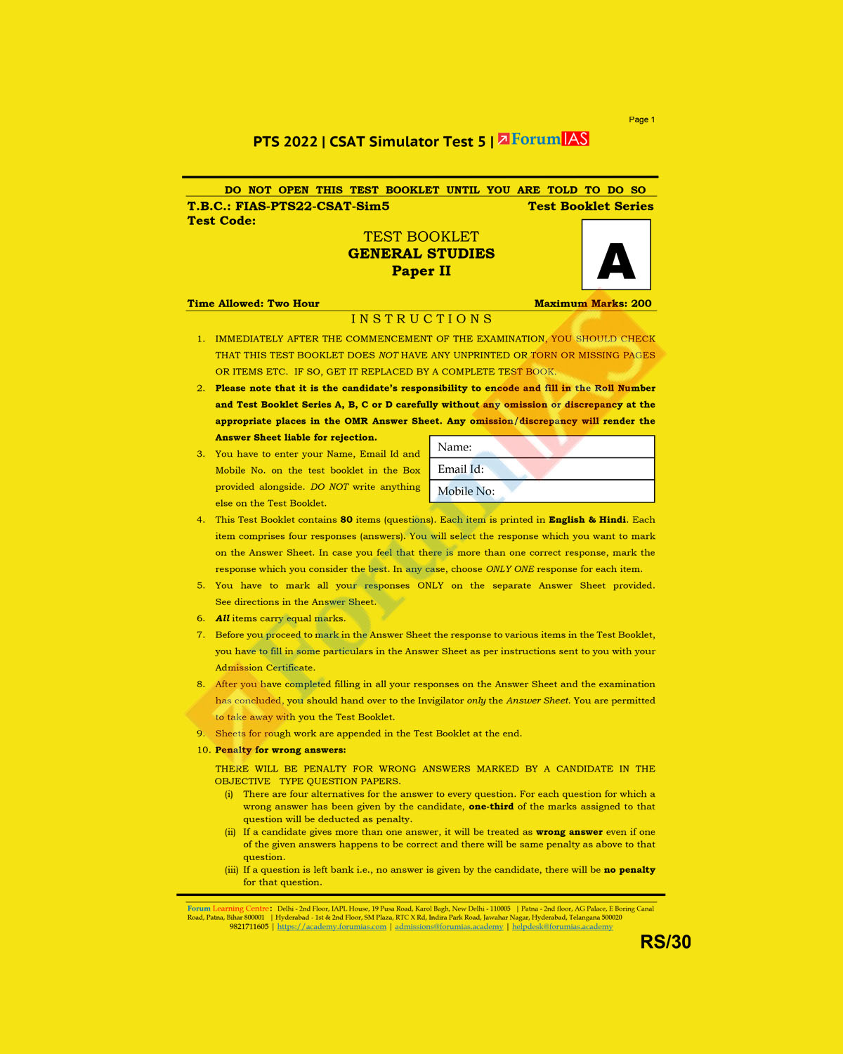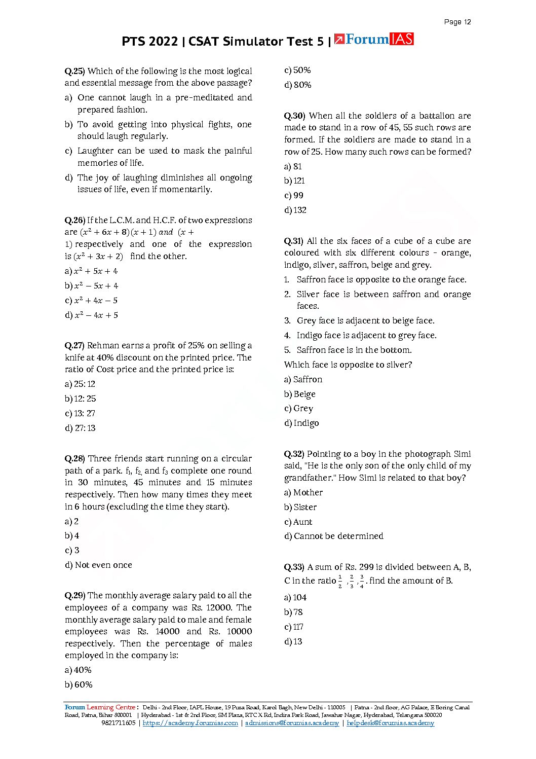 FORUM IAS CSAT 2022 SIMULATOR TEST-5 (BLACK & WHITE)