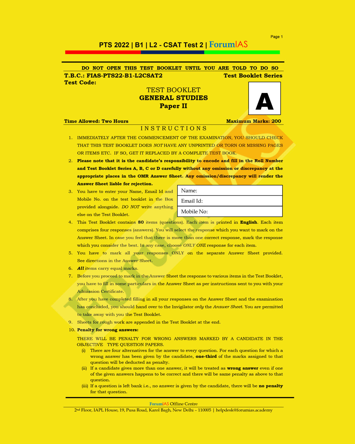 / FORUM IAS GENERAL STUDIES 2022- PTS 2022 BATCH-B-1, L-2- CSAT-TEST-02 (BLACK & WHITE)