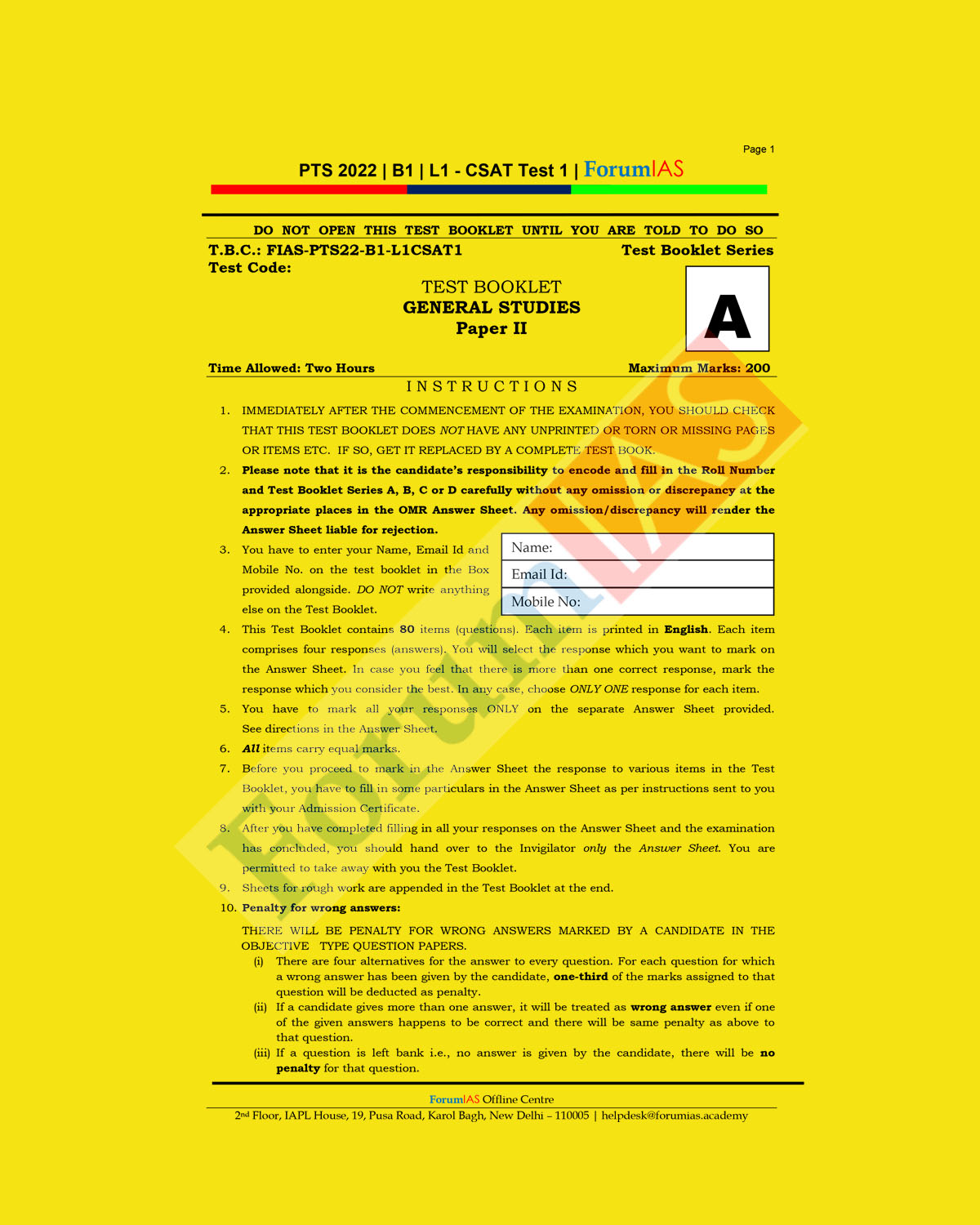 / FORUM IAS GENERAL STUDIES PTS 2022 BATCH-B-1, L-1- CSAT-TEST-1 (BLACK & WHITE)