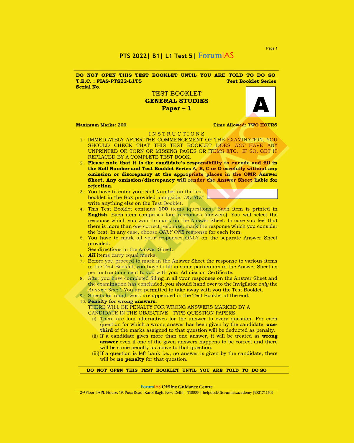 / FORUM IAS GENERAL STUDIES BATCH-B-1, L-1- G.S.-TEST-6 PTS 2022 (BLACK & WHITE)