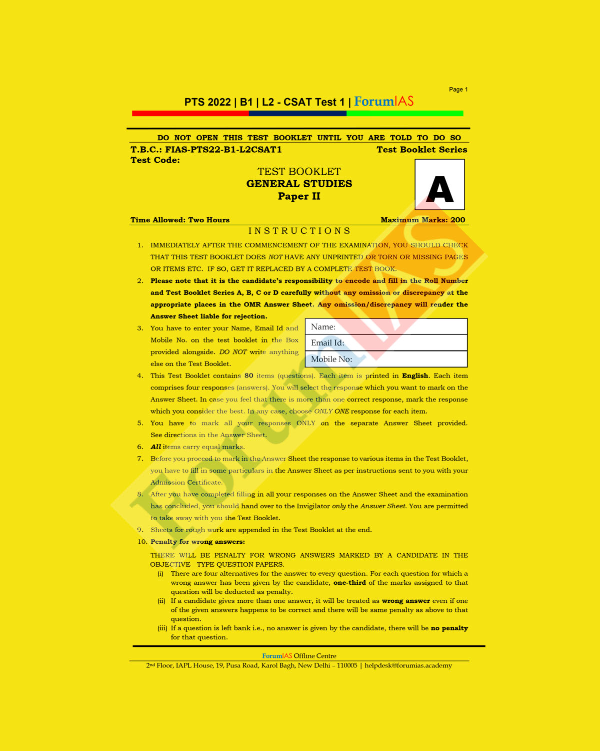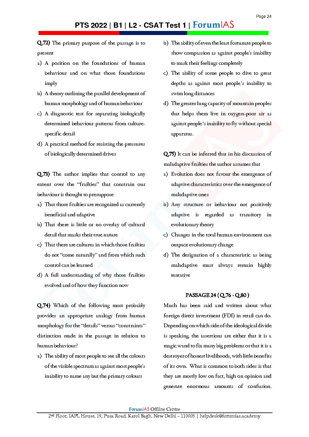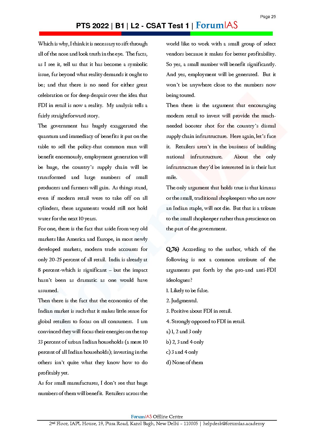 / FORUM IAS GENERAL STUDIES BATCH-B-1, L-2- CSAT TEST-1 PTS 2022 (BLACK V& WHITE)