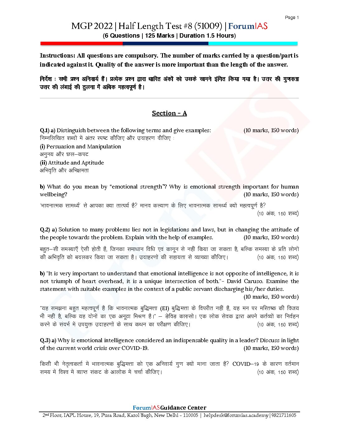 FORUM IAS HALF LENGTH TEST # 7 TO 13 SOLUTION FULL LENGTH TEST # 1 MGP 2022 (BLACK & WHITE)