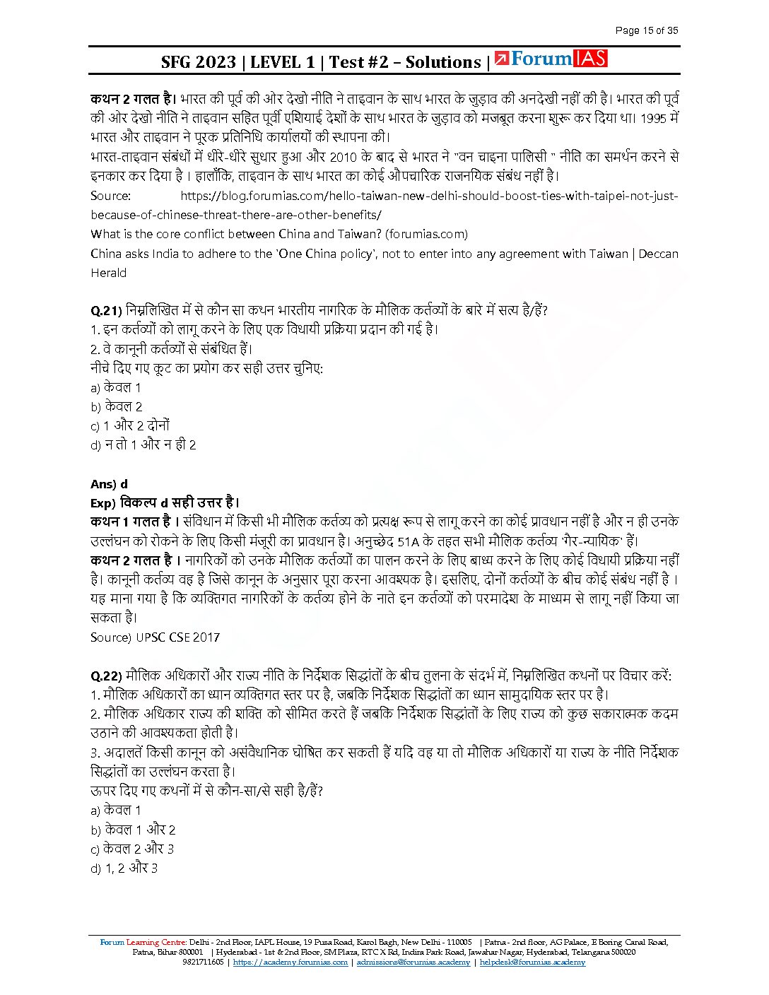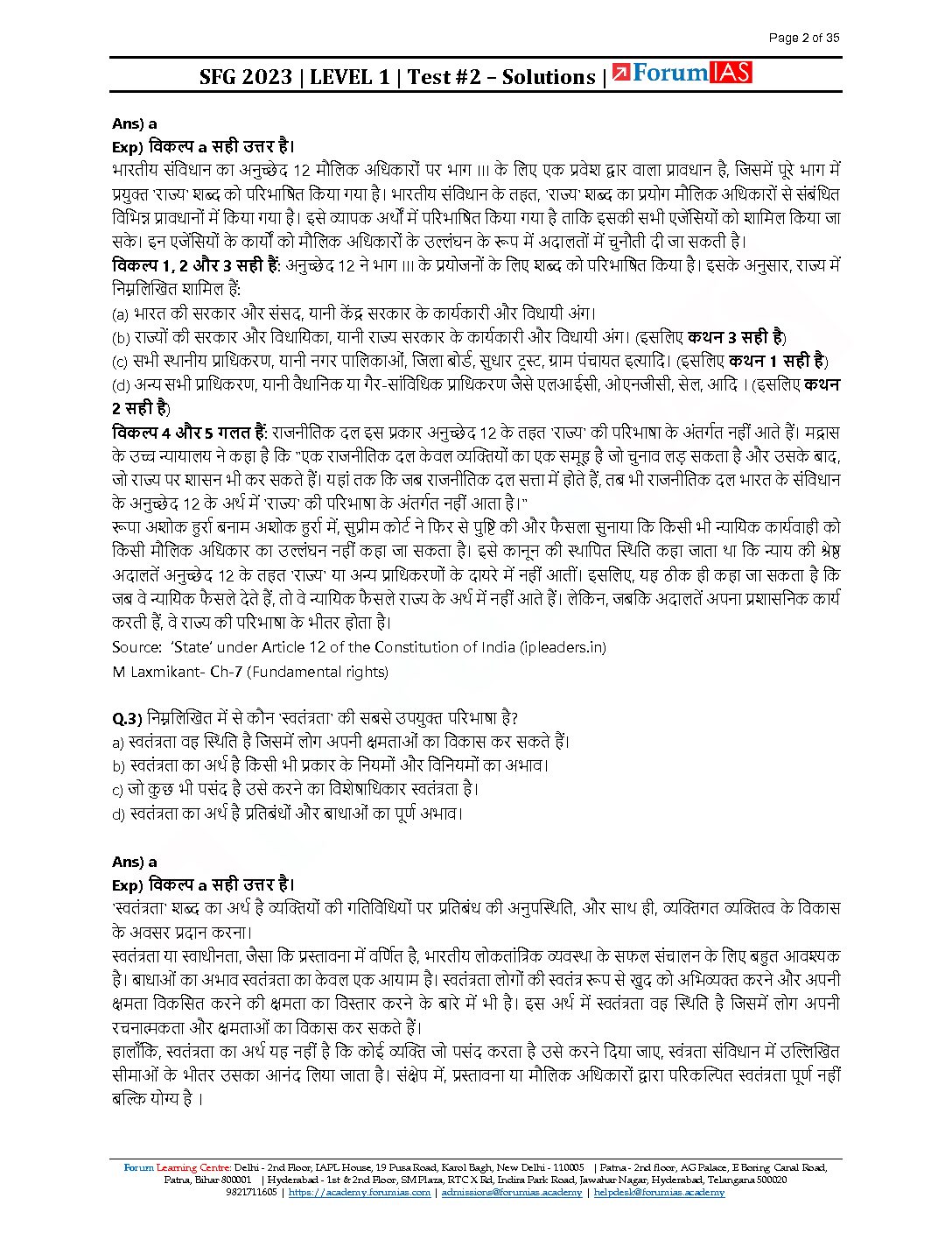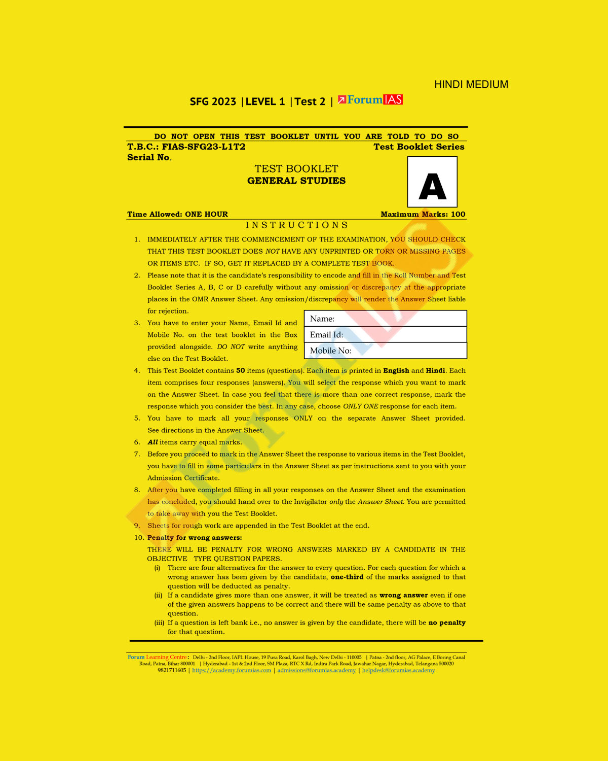FORUM IAS HINDI 2023 SFG LEVEL1 TEST-2 (POLITY-2) GENERAL STUDIES HINDI MEDIUM (BLACK & WHITE)