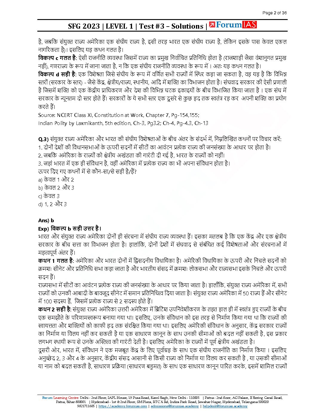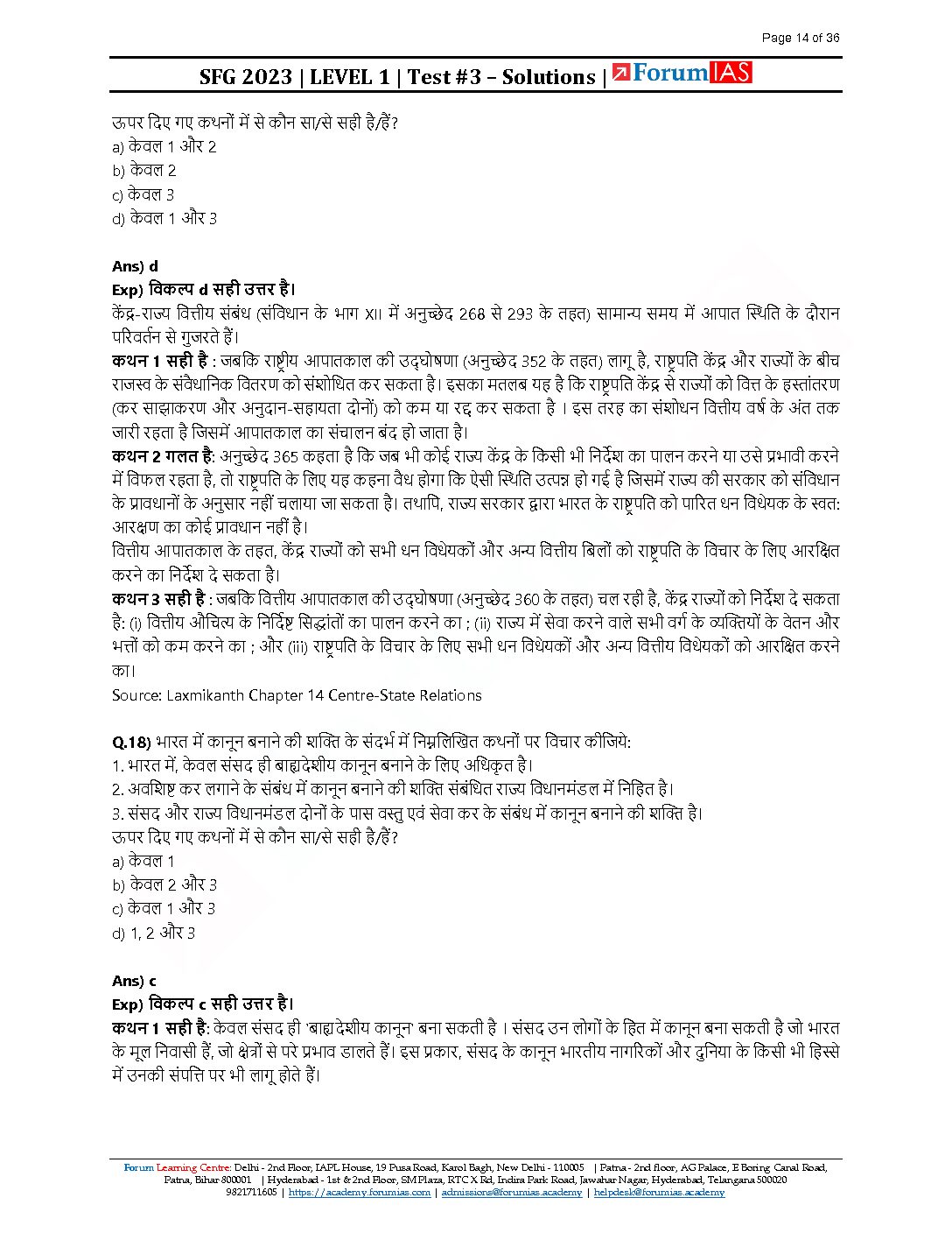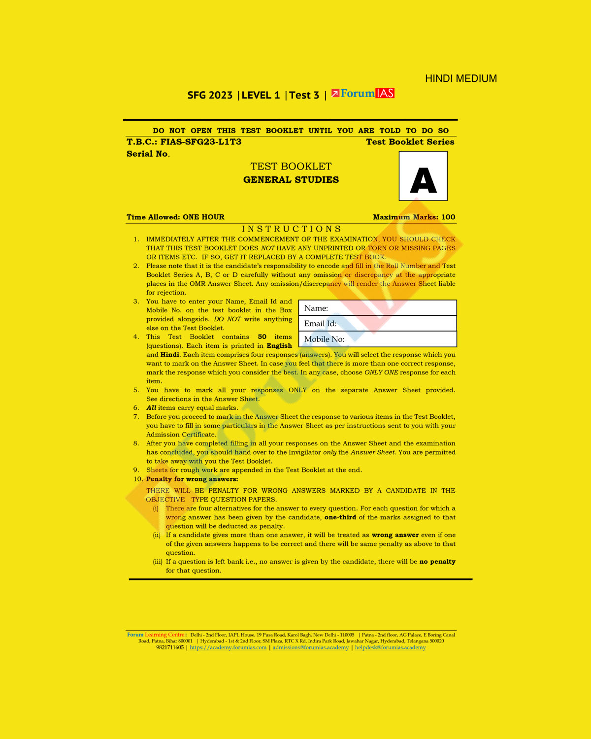 / FORUM IAS HINDI 2023 SFG LEVEL1 TEST-3 (POLITY-3) GENERAL STUDIES HINDI MEDIUM (BLACK & WHITE)
