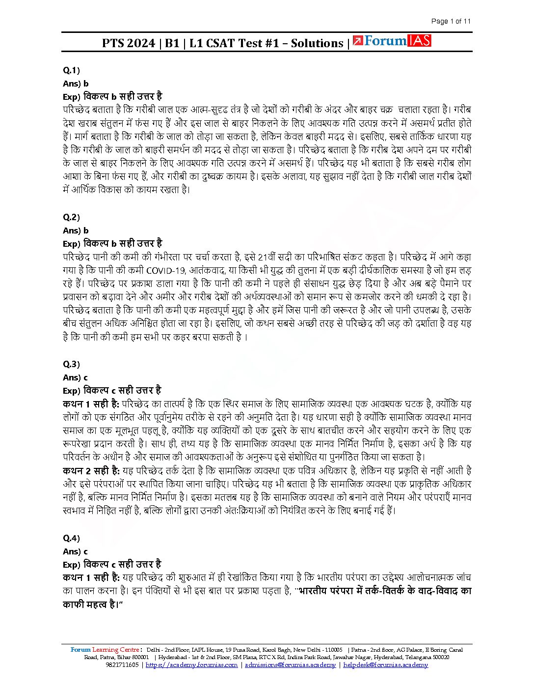 FORUM IAS HINDI 2024 CSAT TEST-01 (L1 TEST-1) (COMPREHENSION AND ENGLISH) HINDI MEDIUM 2024 (BLACK & WHITE)