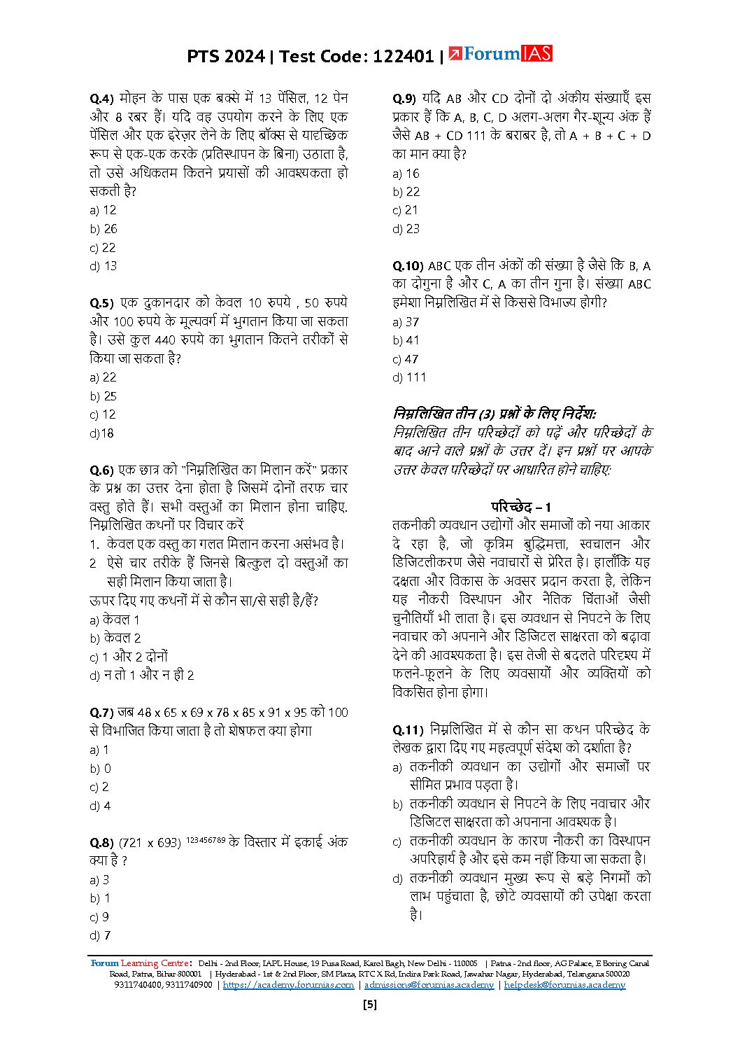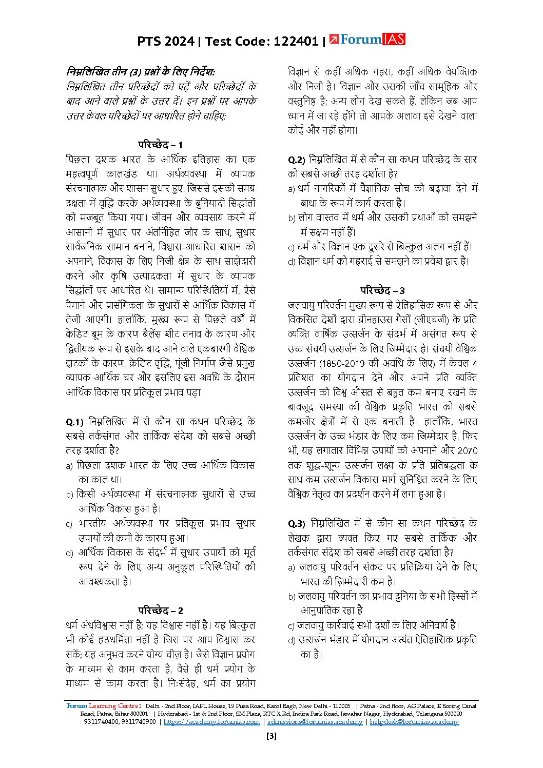 FORUM IAS HINDI 2024 SIMULATOR TEST-1 2024 FINAL {FULL TEST} {HINDI} {BLACK AND WHITE}