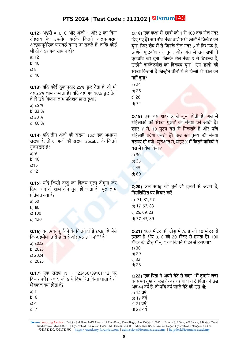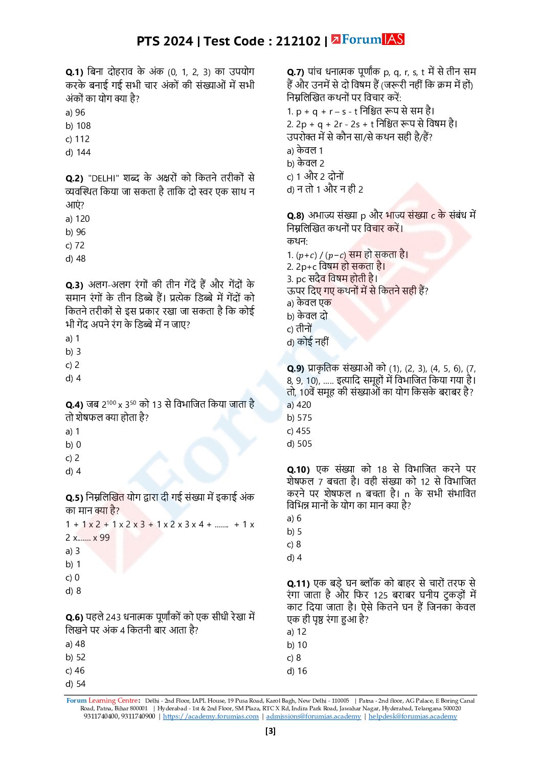 / FORUM IAS HINDI 2025 CSAT TEST-3 (L1 TEST-3) 2025 FINAL (HINDI) {BLACK AND WHITE}