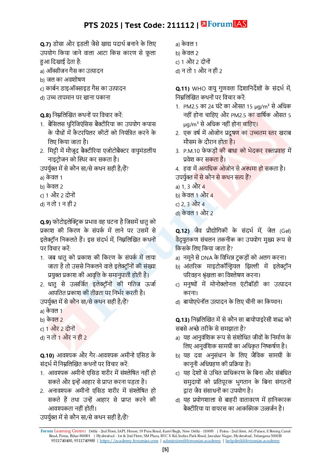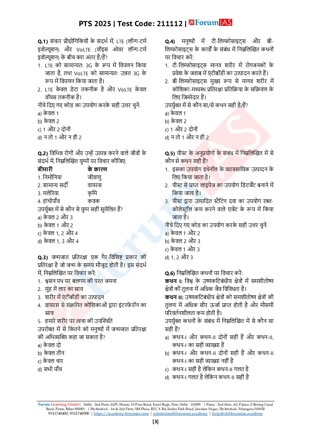 FORUM IAS HINDI 2025 TEST-12 (L1 TEST-12) ENVIRONMENT + SCIENCE & TECHNOLOGY 2025 FINAL (HINDI) {BLACK AND WHITE)