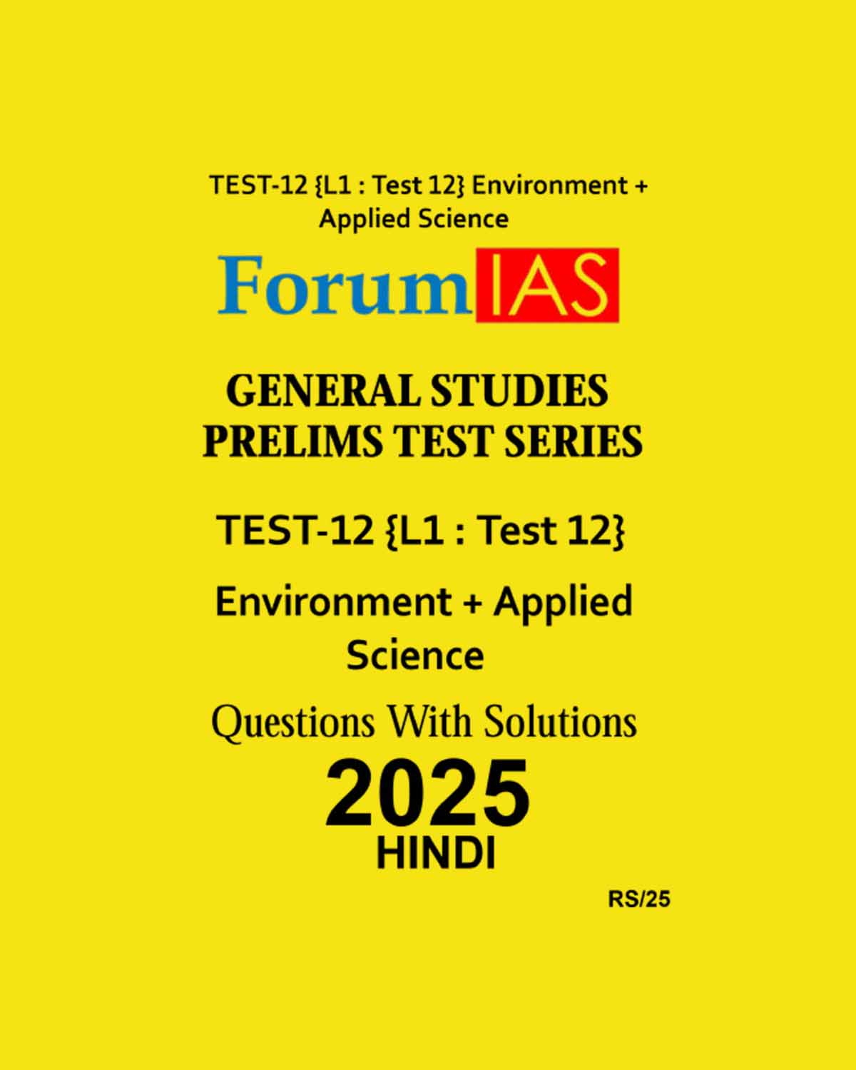 FORUM IAS HINDI 2025 TEST-12 (L1 TEST-12) ENVIRONMENT + SCIENCE & TECHNOLOGY 2025 FINAL (HINDI) {BLACK AND WHITE) quantity