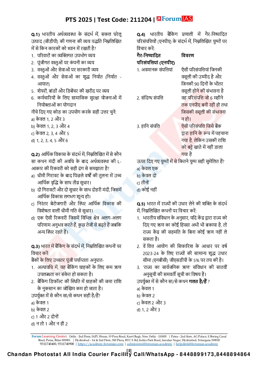 / FORUM IAS HINDI 2025 TEST-16 (L2 TEST-4) ECONOMICS-1 2025 FINAL HINDI {BLACK AND WHITE}