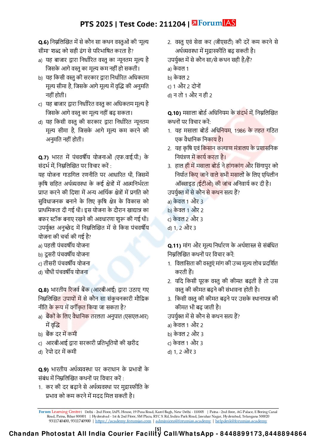 FORUM IAS HINDI 2025 TEST-16 (L2 TEST-4) ECONOMICS-1 2025 FINAL HINDI {BLACK AND WHITE}