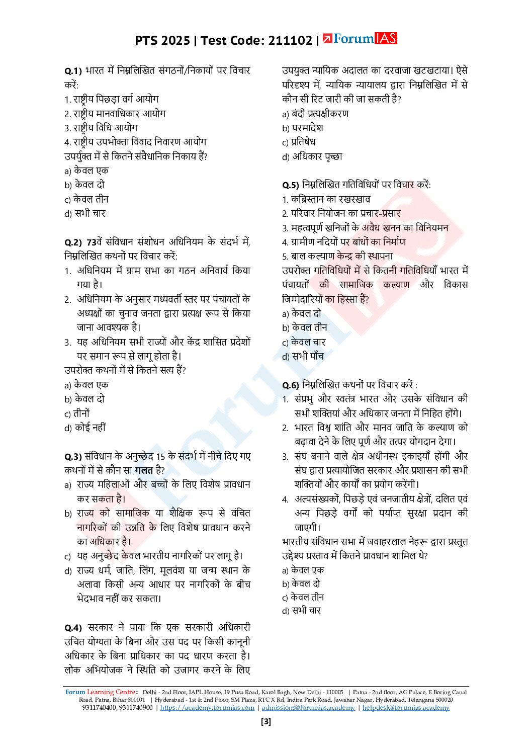 FORUM IAS HINDI 2025 TEST-2 (L1 TEST-2) POLITY AND SOCIETY 2025 FINAL (HINDI) {BLACK AND WHITE)
