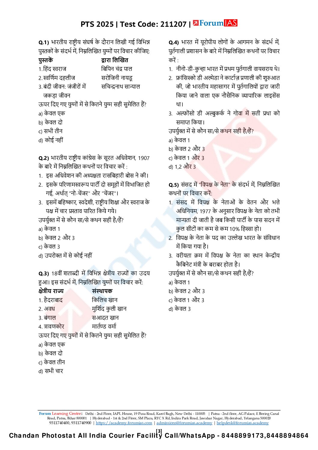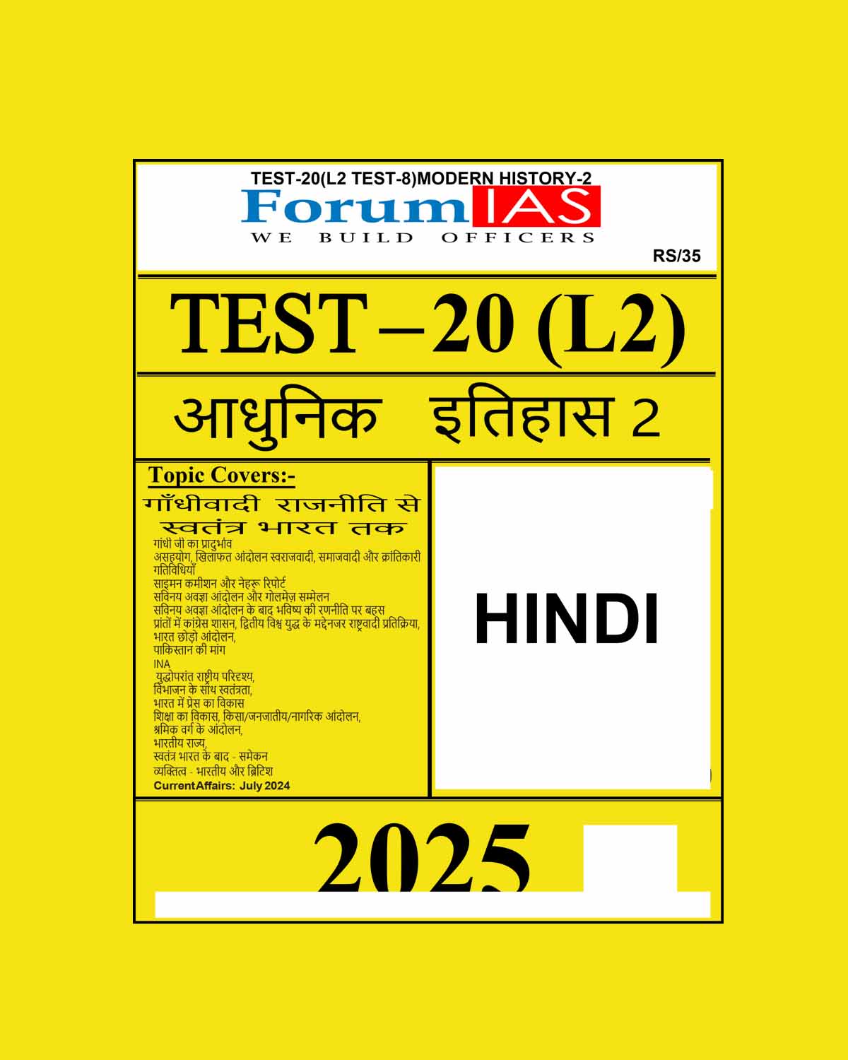 FORUM IAS HINDI 2025 TEST-20 (L2 TEST-8)MODERN HISTORY-2 2025 FINAL HINDI {BLACK AND WHITE}