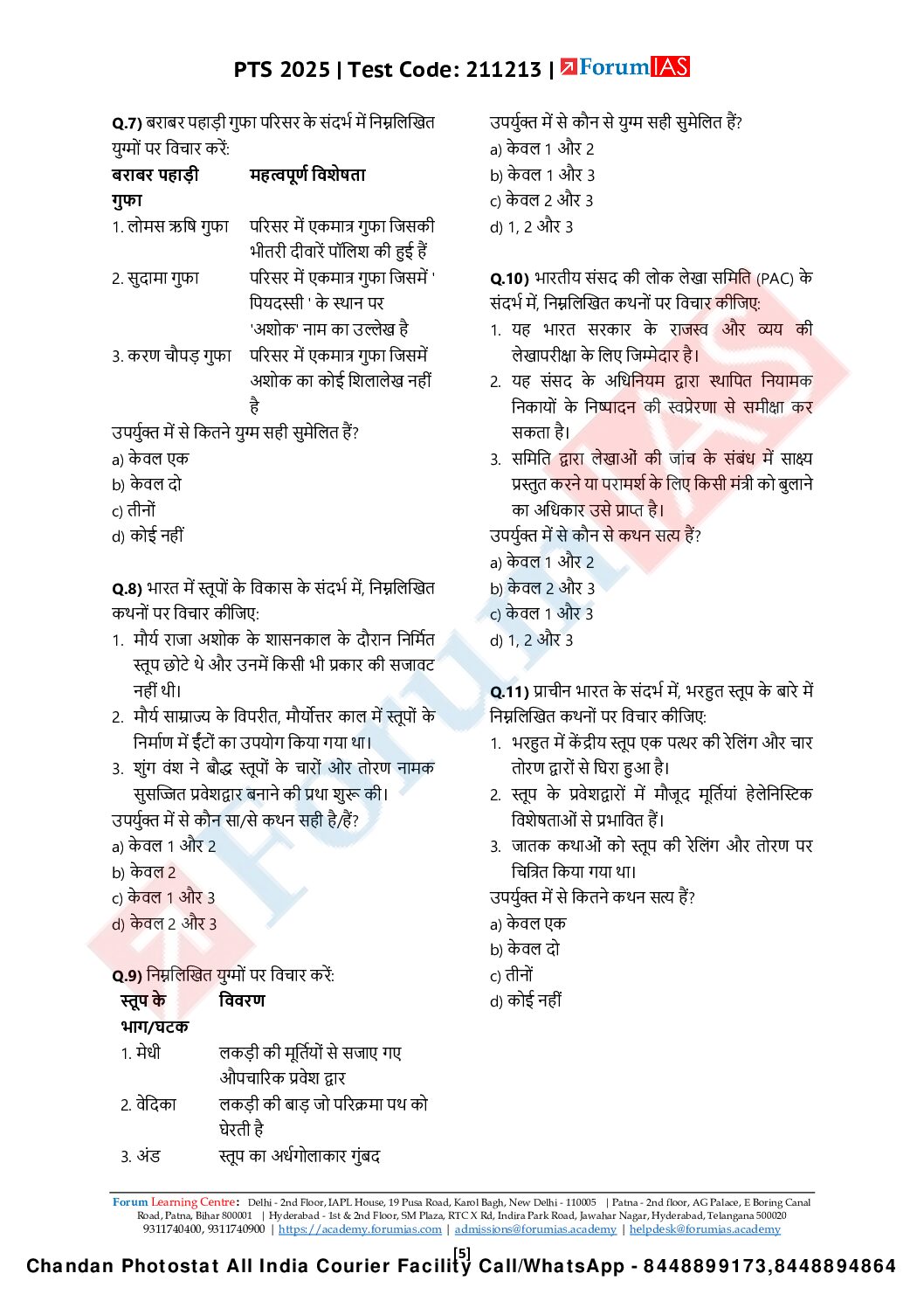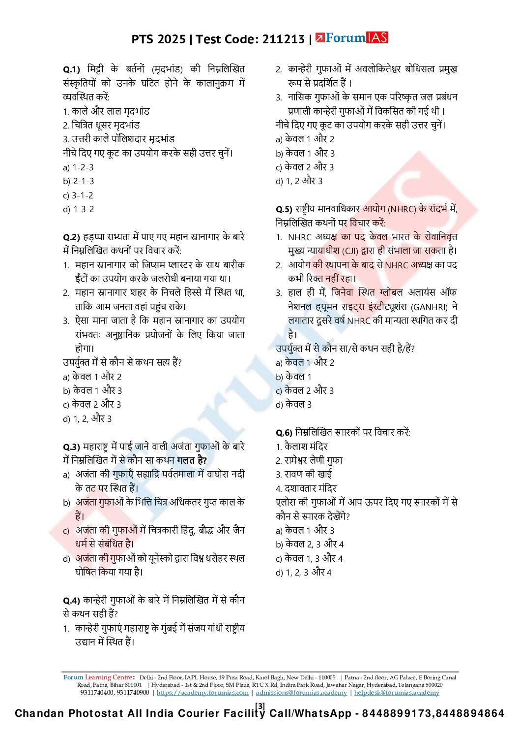 FORUM IAS HINDI 2025 TEST-25 (L2 TEST-13) ART AND CULTURE-1 2025 FINAL HINDI {BLACK AND WHITE}