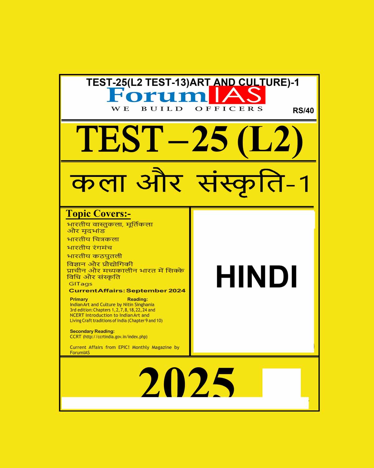 FORUM IAS HINDI 2025 TEST-25 (L2 TEST-13) ART AND CULTURE-1 2025 FINAL HINDI {BLACK AND WHITE} quantity