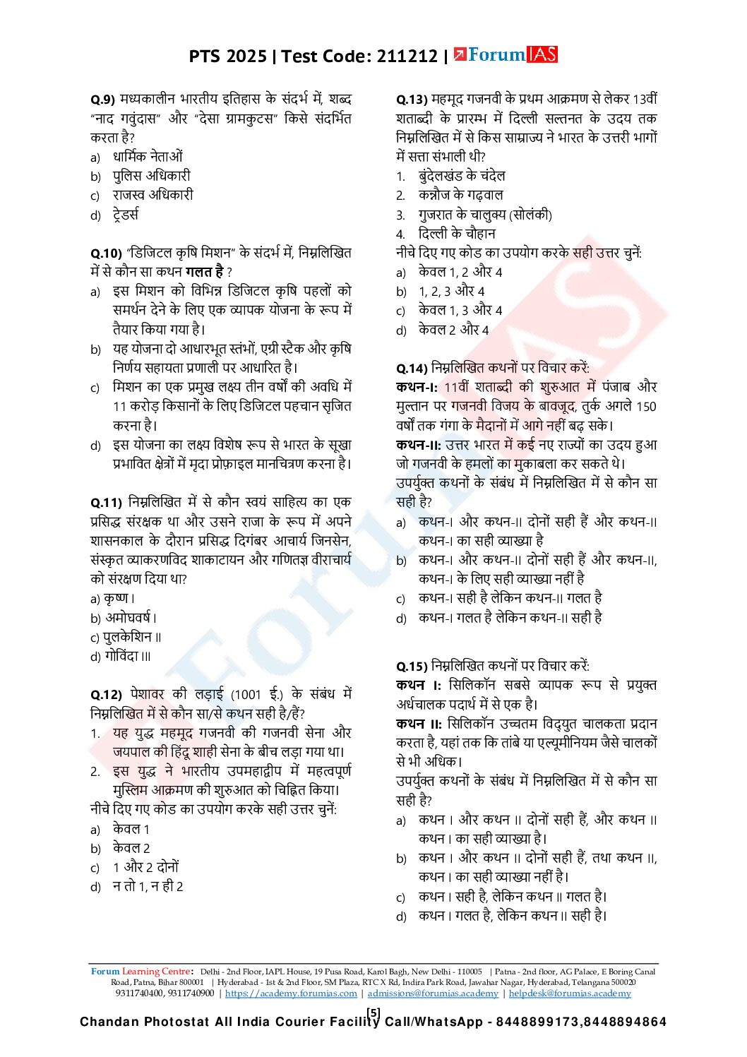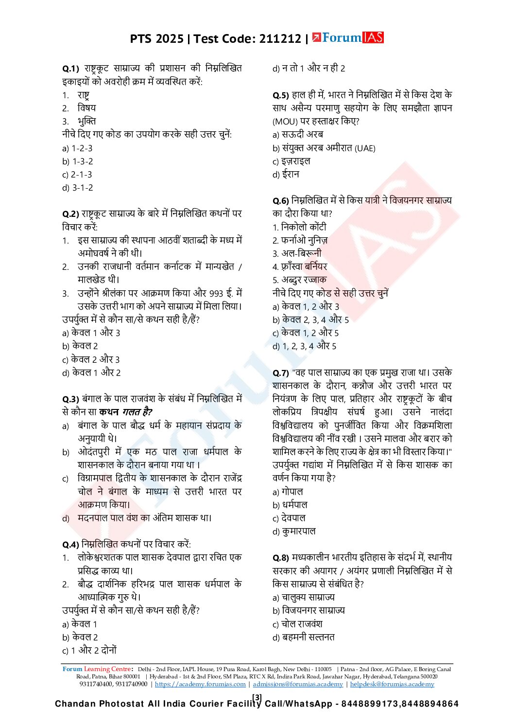 FORUM IAS HINDI 2025 TEST-24 (L2 TEST-12) MEDIEVAL HISTORY 2025 FINAL HINDI {BLACK AND WHITE}