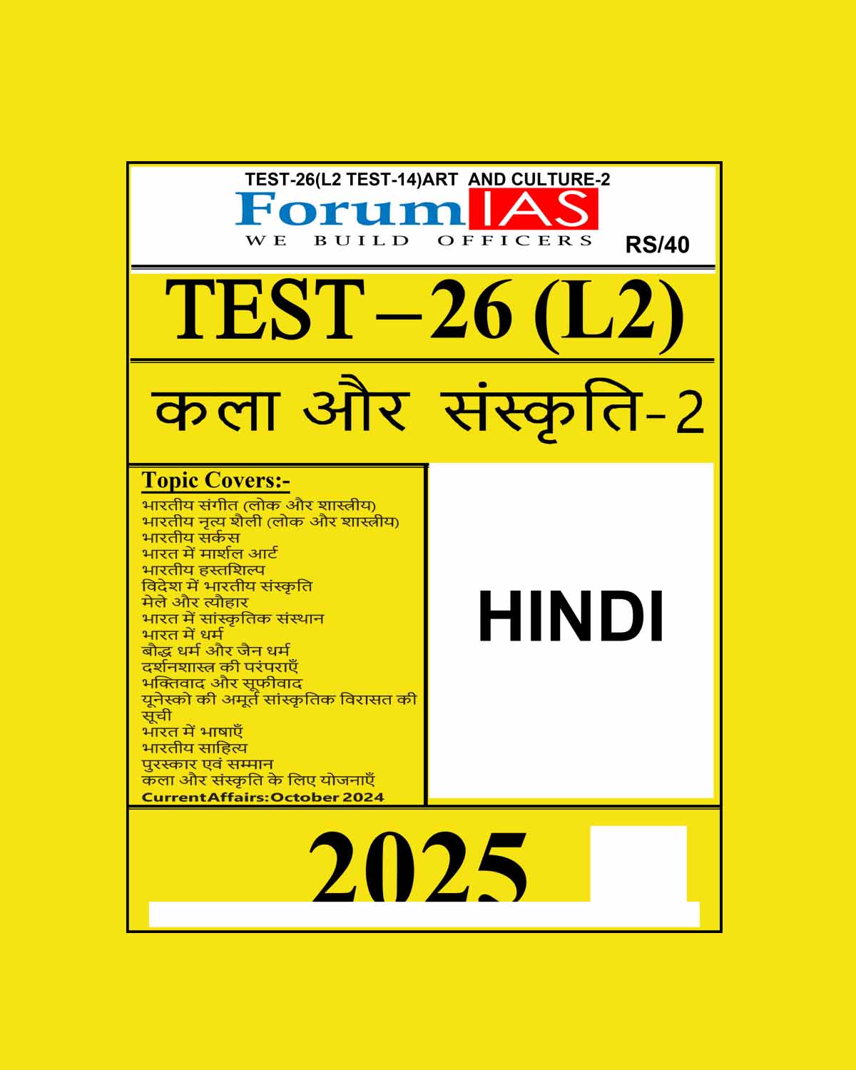 FORUM IAS HINDI 2025 TEST-26 (L2 TEST-14) ART AND CULTURE-2 2025 FINAL HINDI {BLACK AND WHITE}