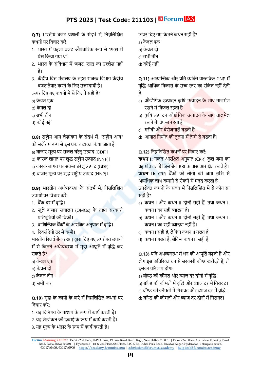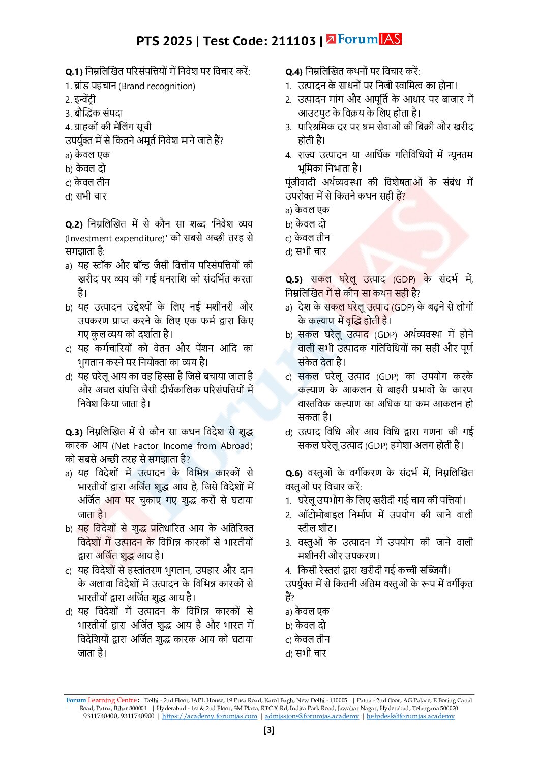 FORUM IAS HINDI 2025 TEST-3 (L1 TEST-3) ECONOMICS 2025 FINAL (HINDI) {BLACK AND WHITE)