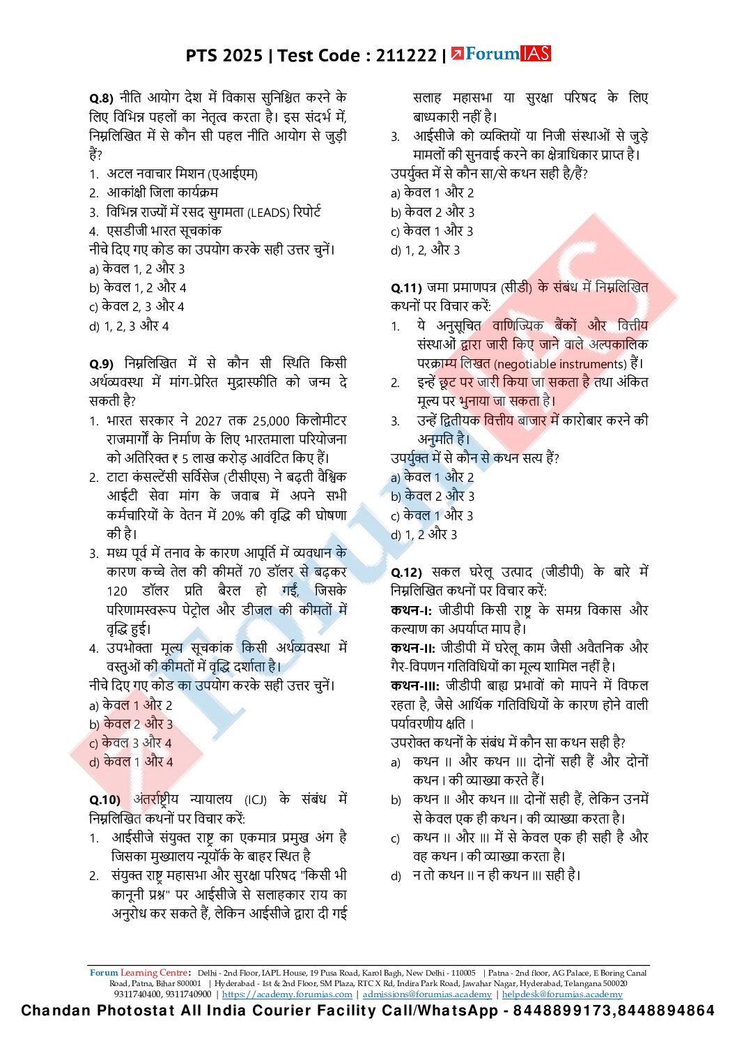 / FORUM IAS HINDI 2025 TEST-31 (L3 TEST-1) POLITY FULL TEST 2025 FINAL HINDI {BLACK AND WHITE}