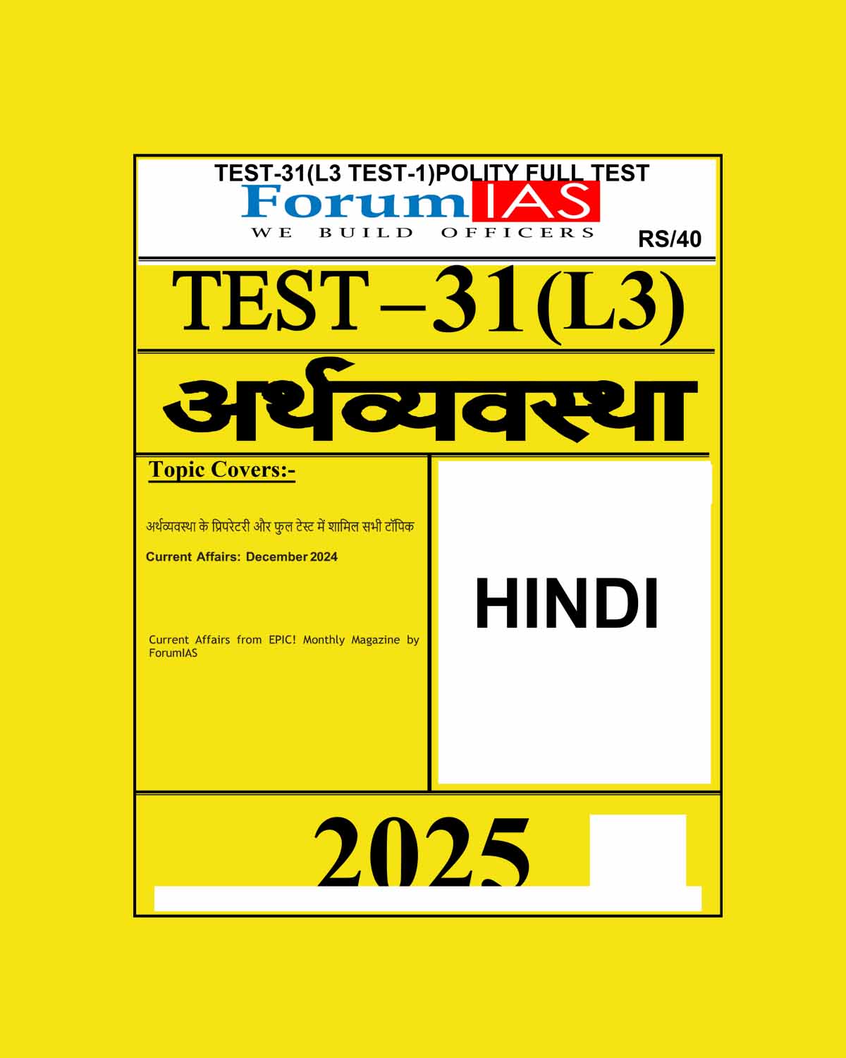 FORUM IAS HINDI 2025 TEST-31 (L3 TEST-1) POLITY FULL TEST 2025 FINAL HINDI {BLACK AND WHITE}