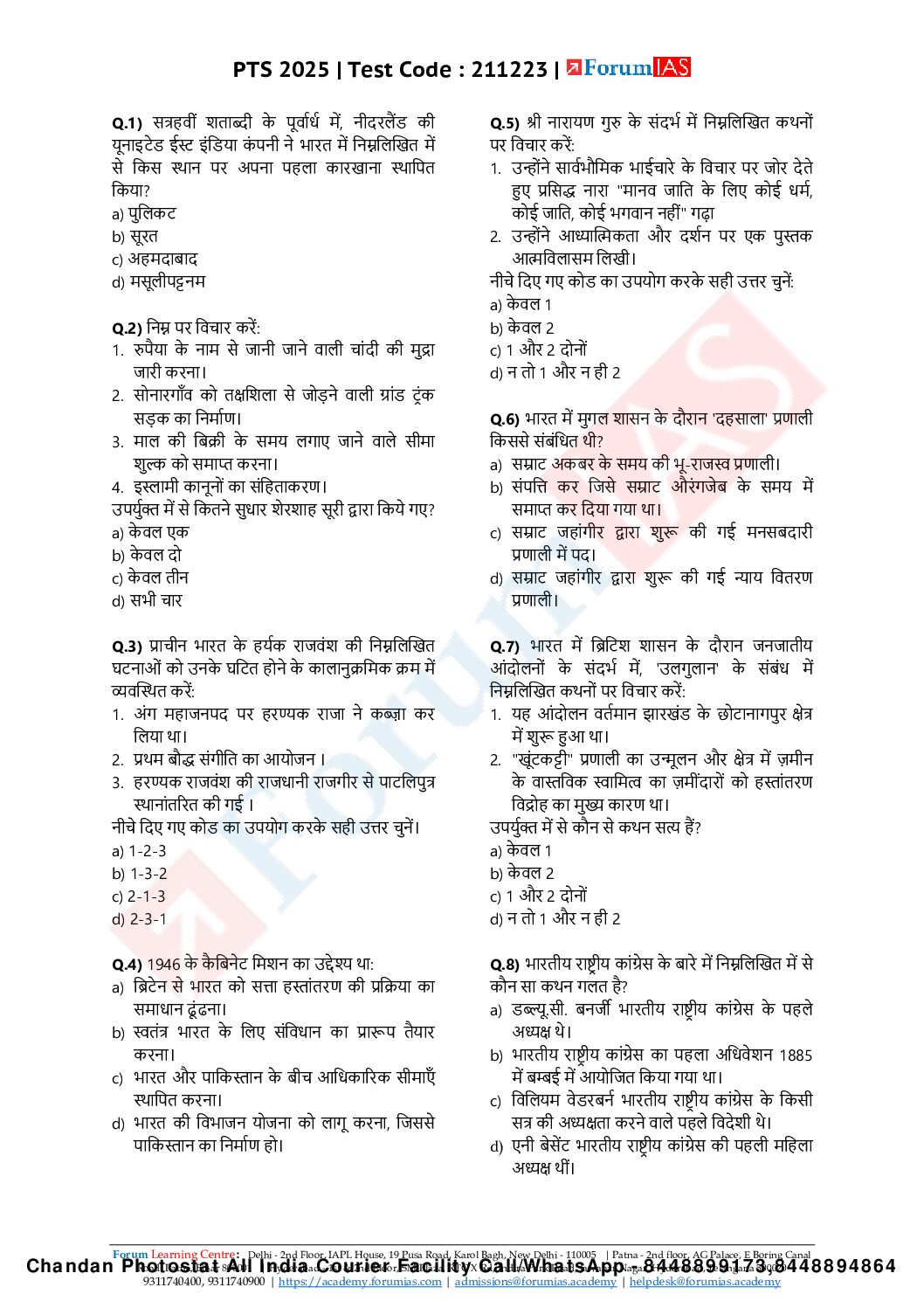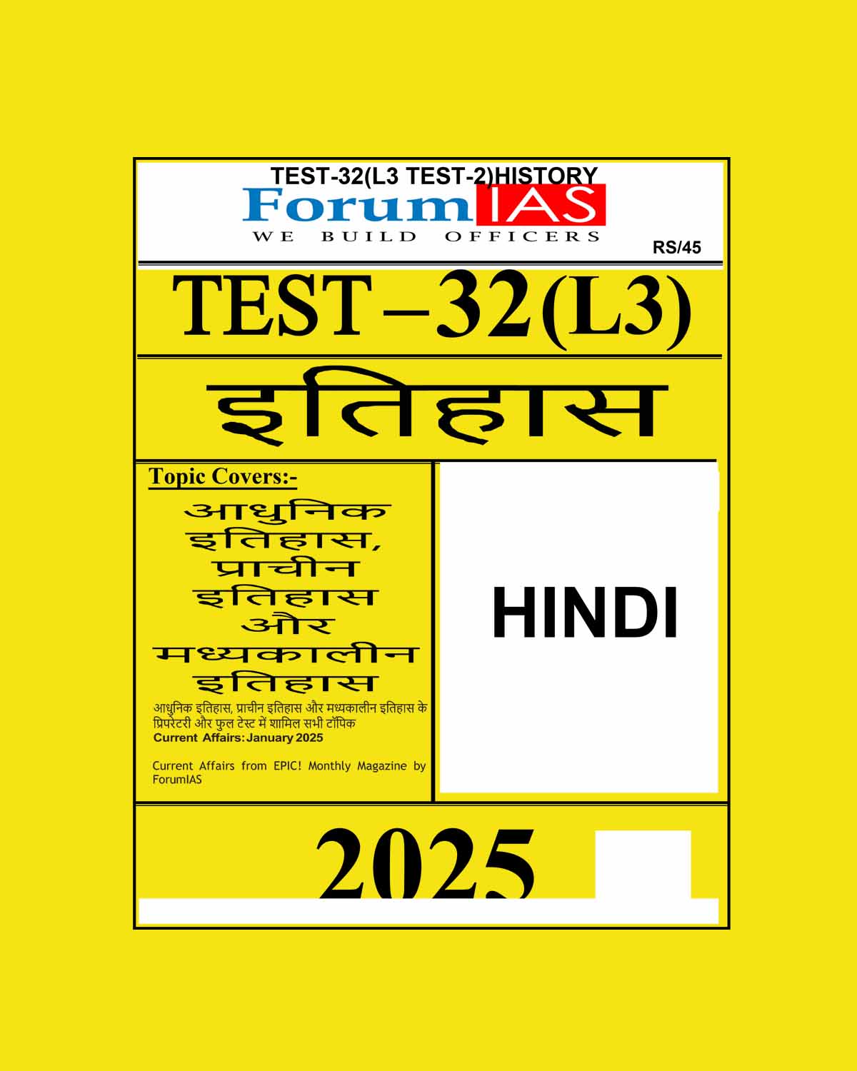 FORUM IAS HINDI 2025 TEST-32 (L3 TEST-2) HISTORY FULL TEST 2025 FINAL HINDI {BLACK AND WHITE}