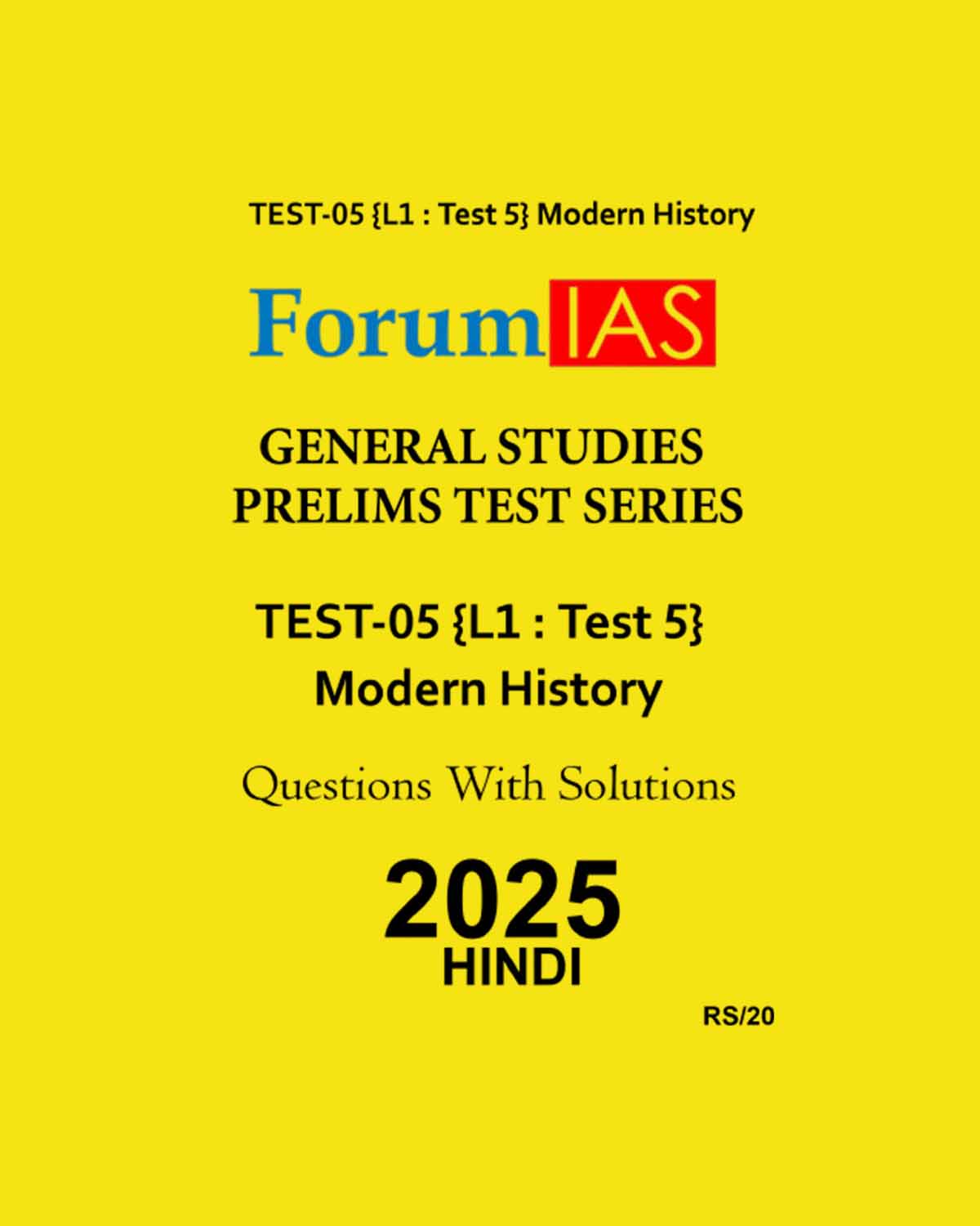 FORUM IAS HINDI 2025 TEST-5 (L1 TEST-5) MODERN HISTORY 2025 FINAL (HINDI) {BLACK AND WHITE) quantity