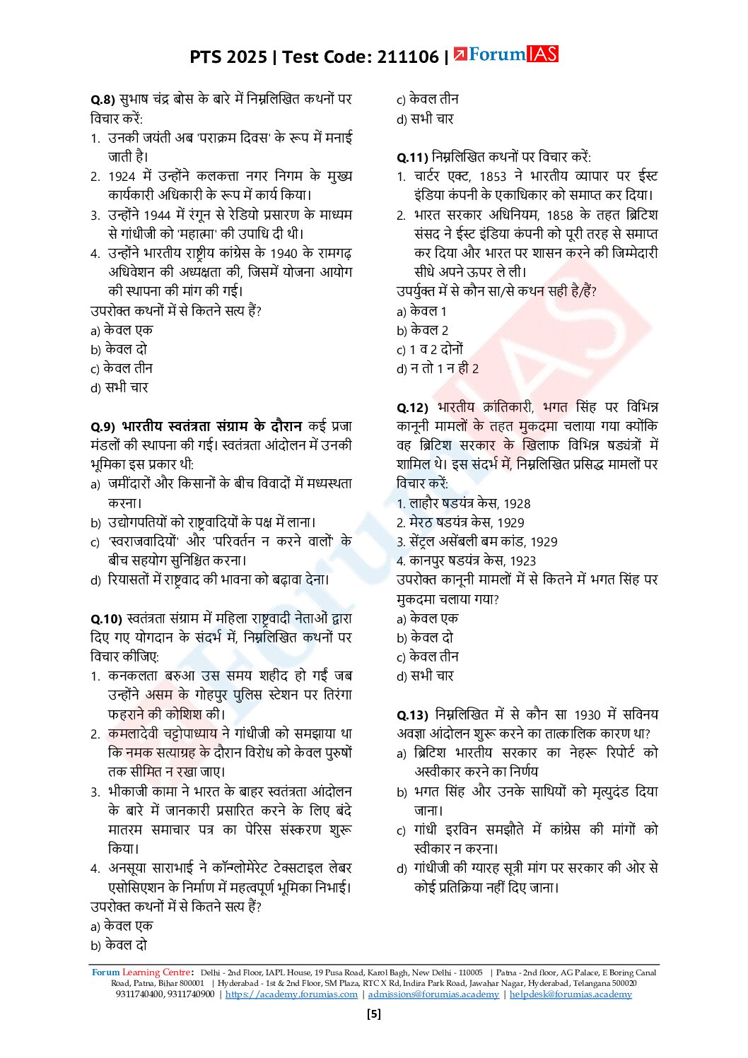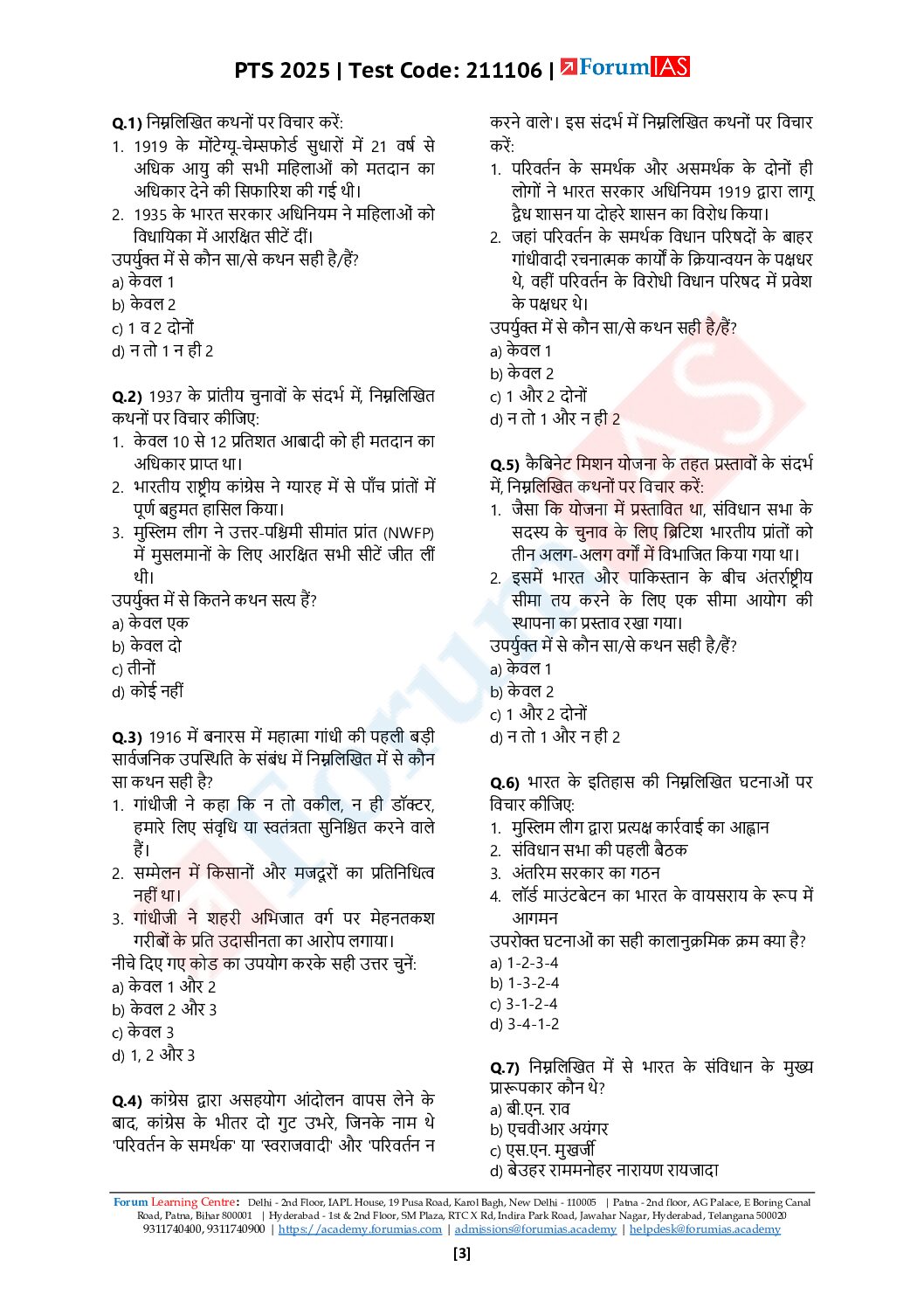 / FORUM IAS HINDI 2025 TEST-6 (L1 TEST-6) MODERN HISTORY 2025 FINAL (HINDI) {BLACK AND WHITE)